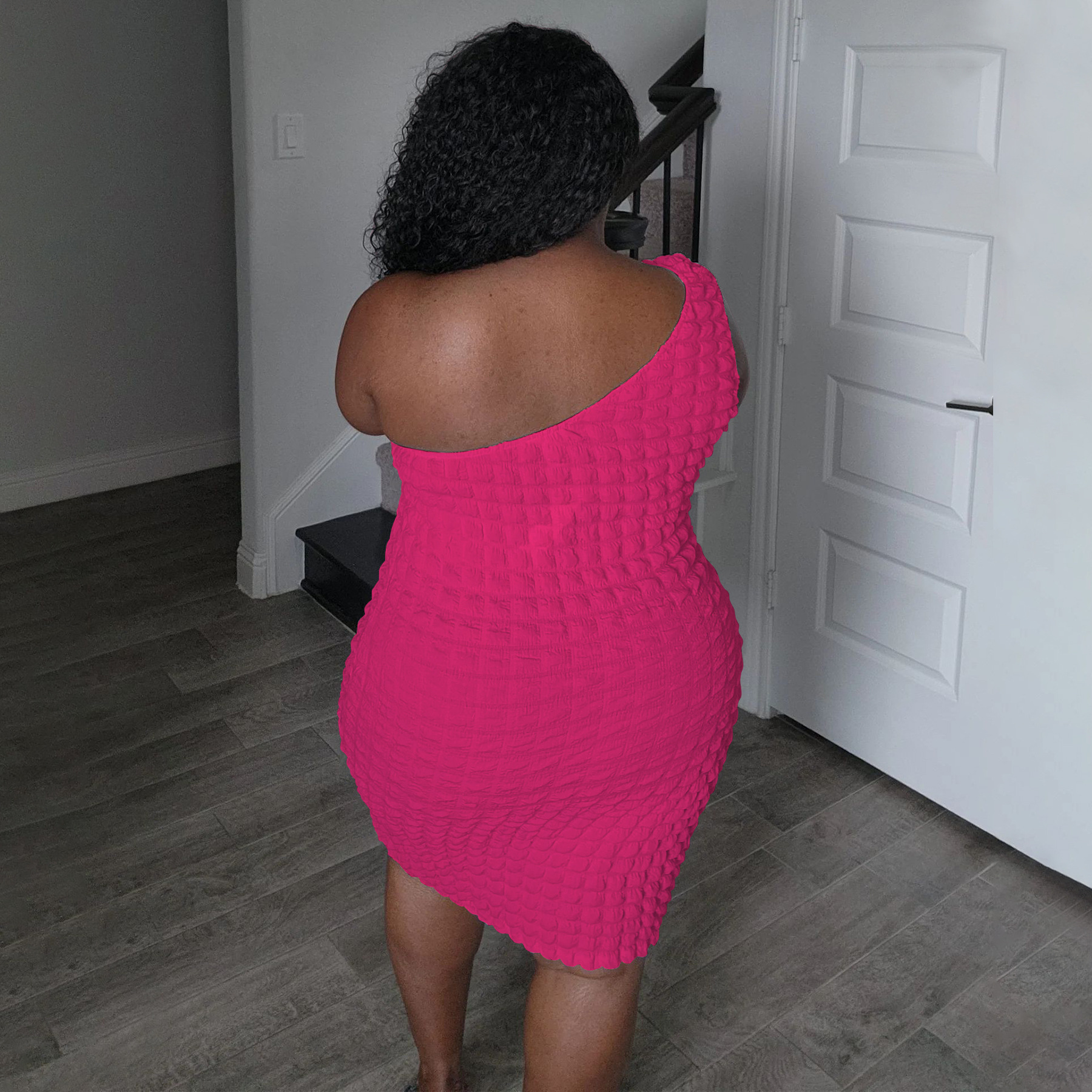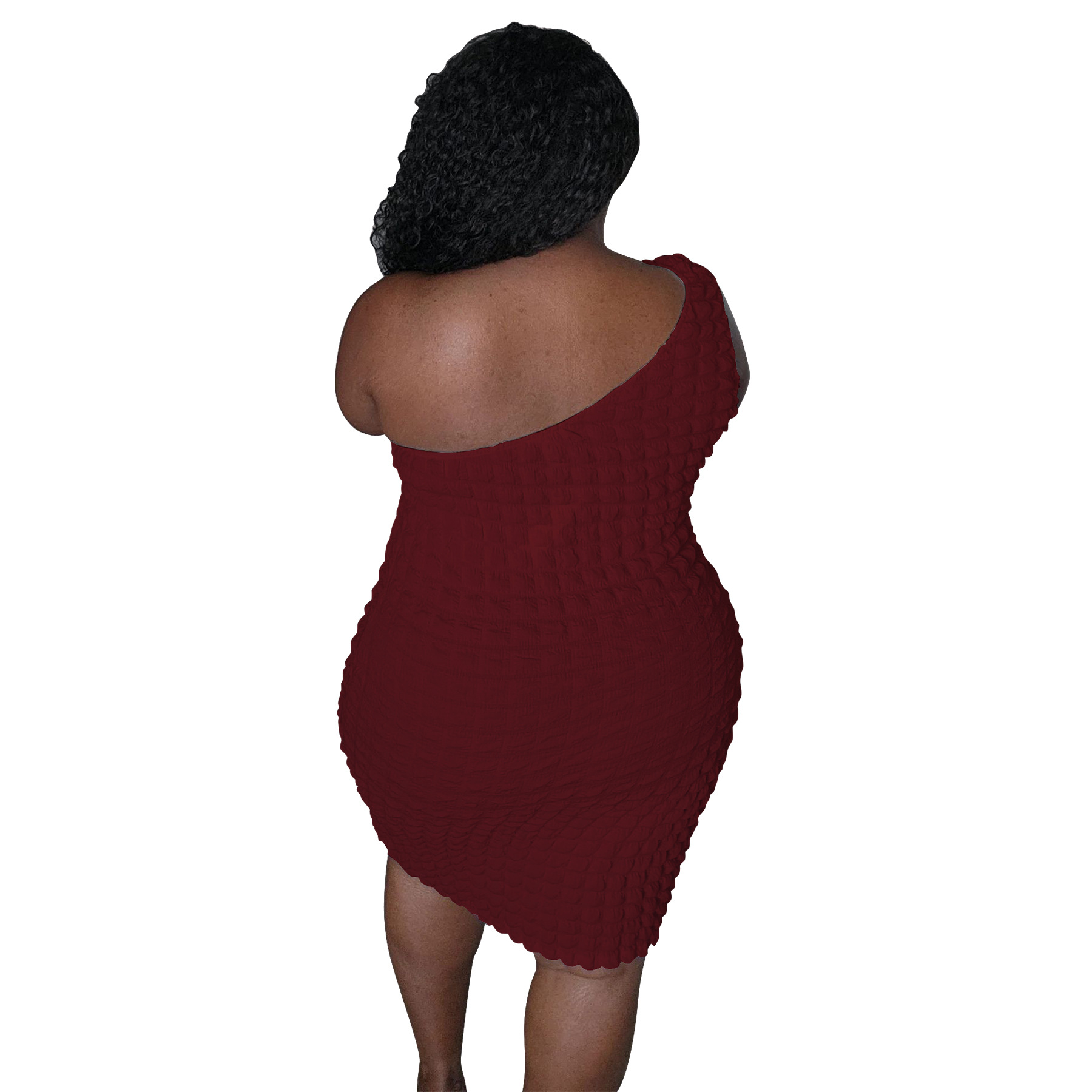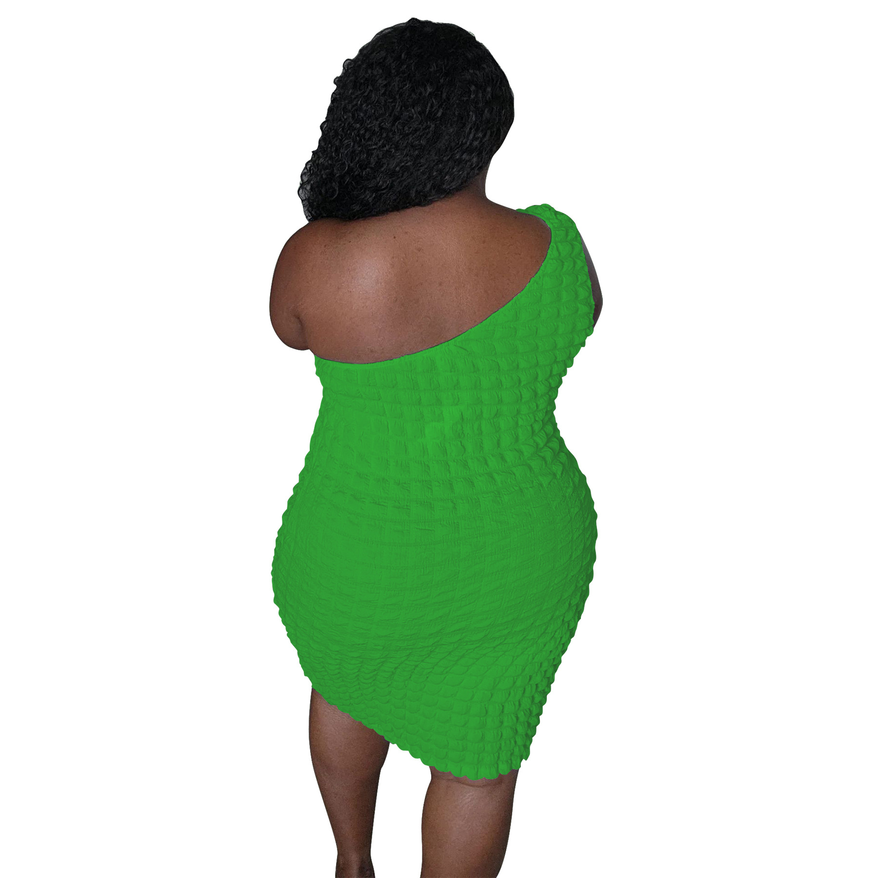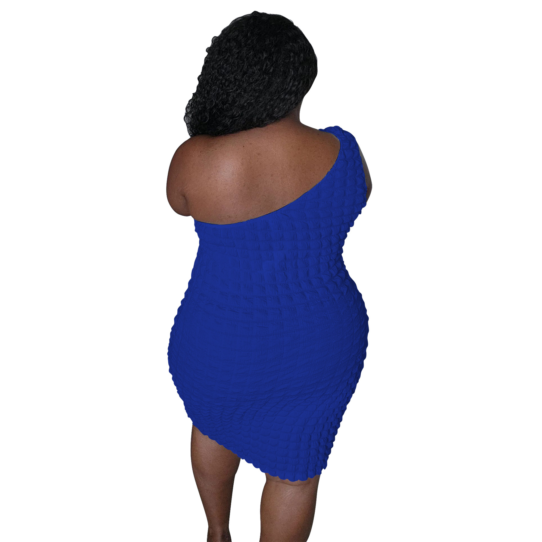 Asymmetrical-neck Solid-color Figure-hugging Sheath Dress