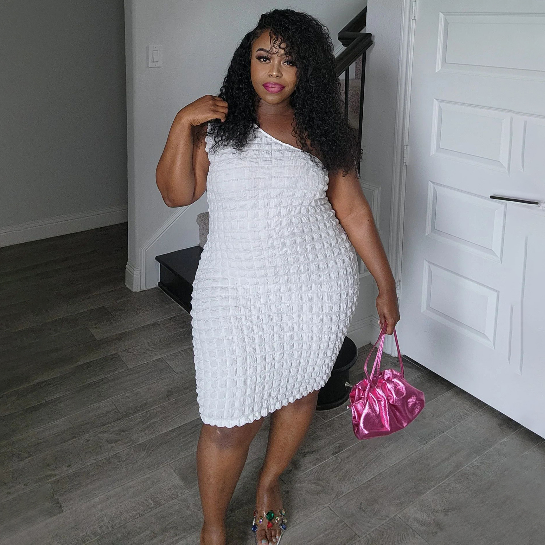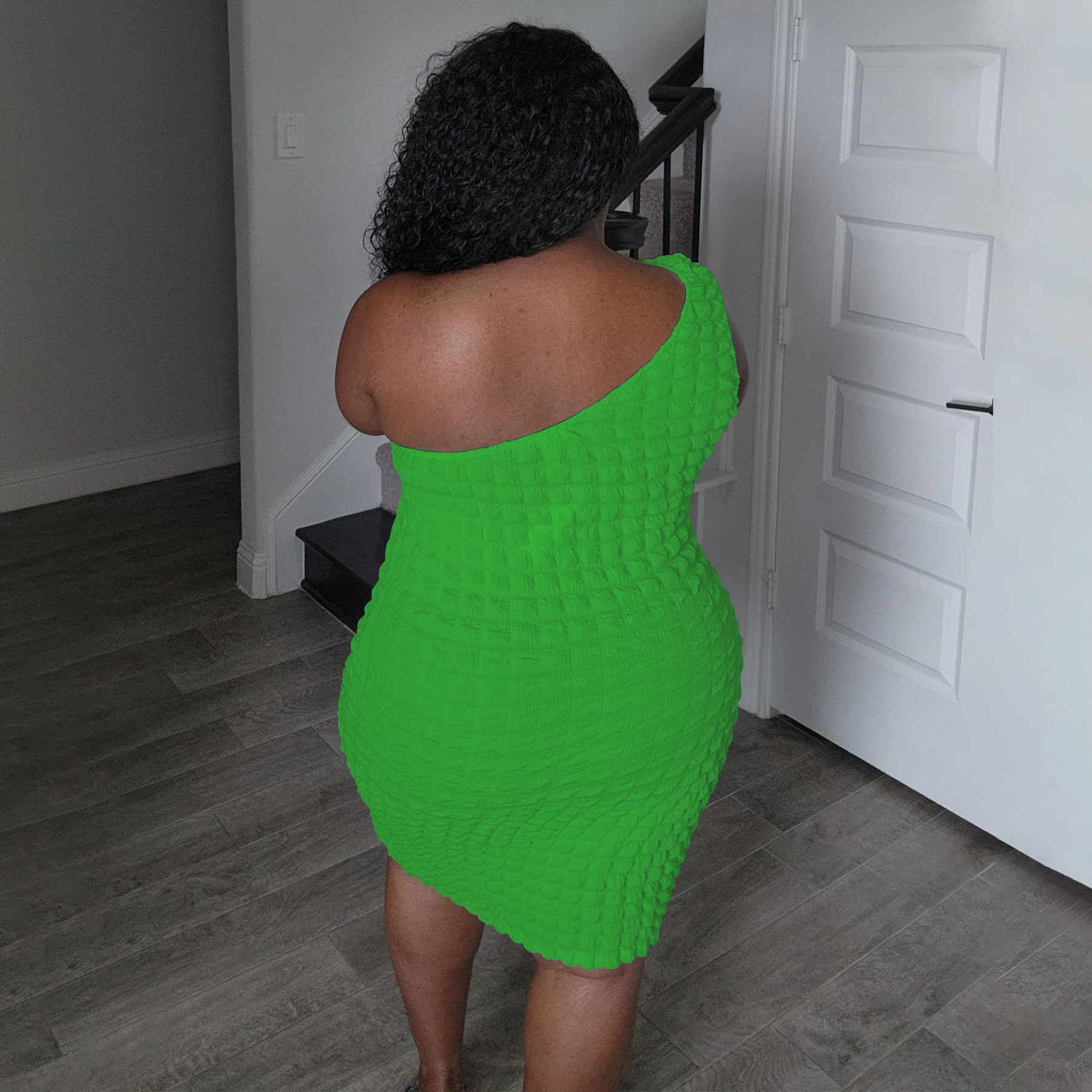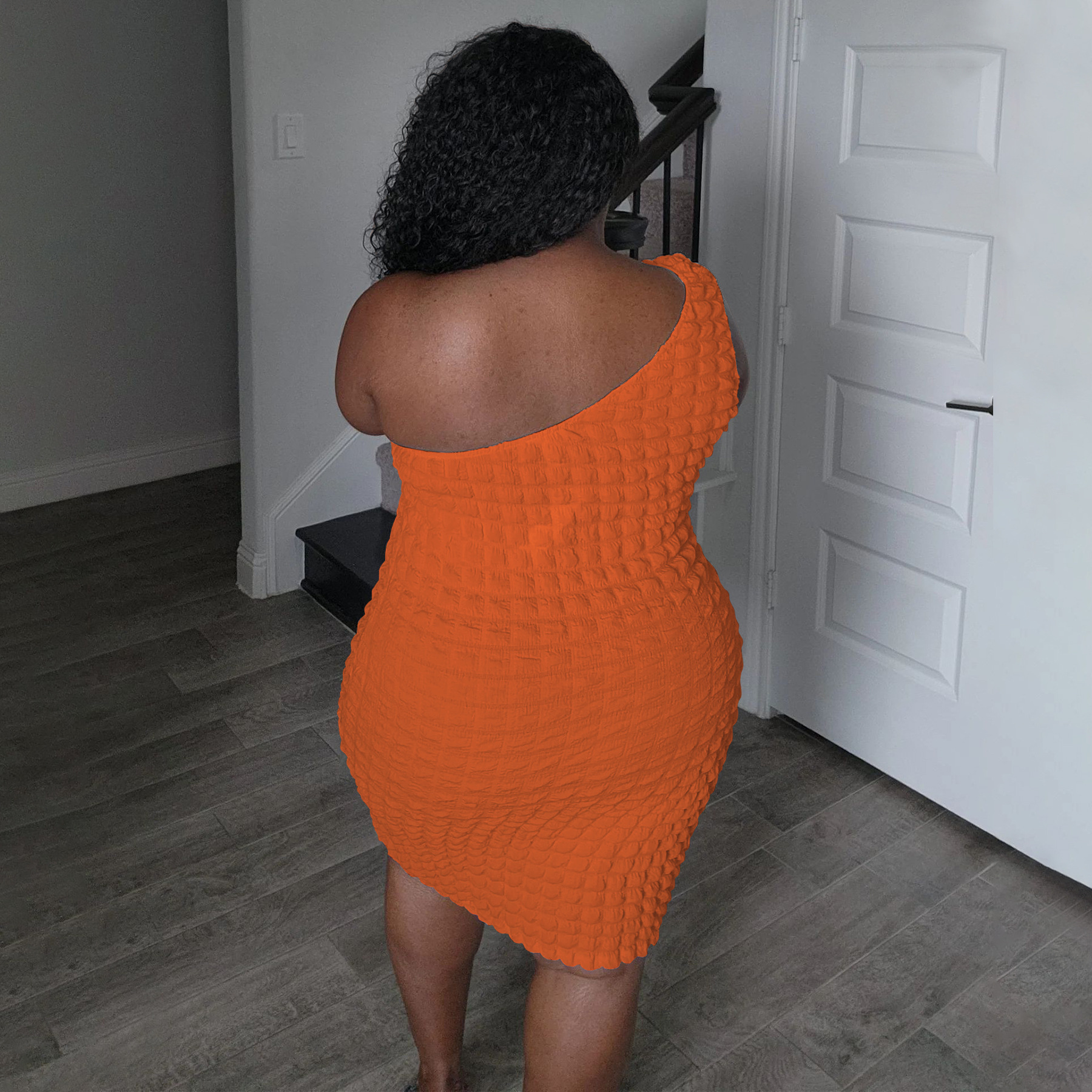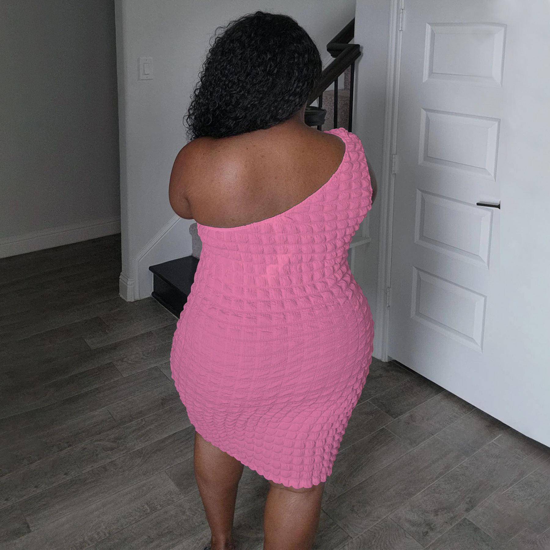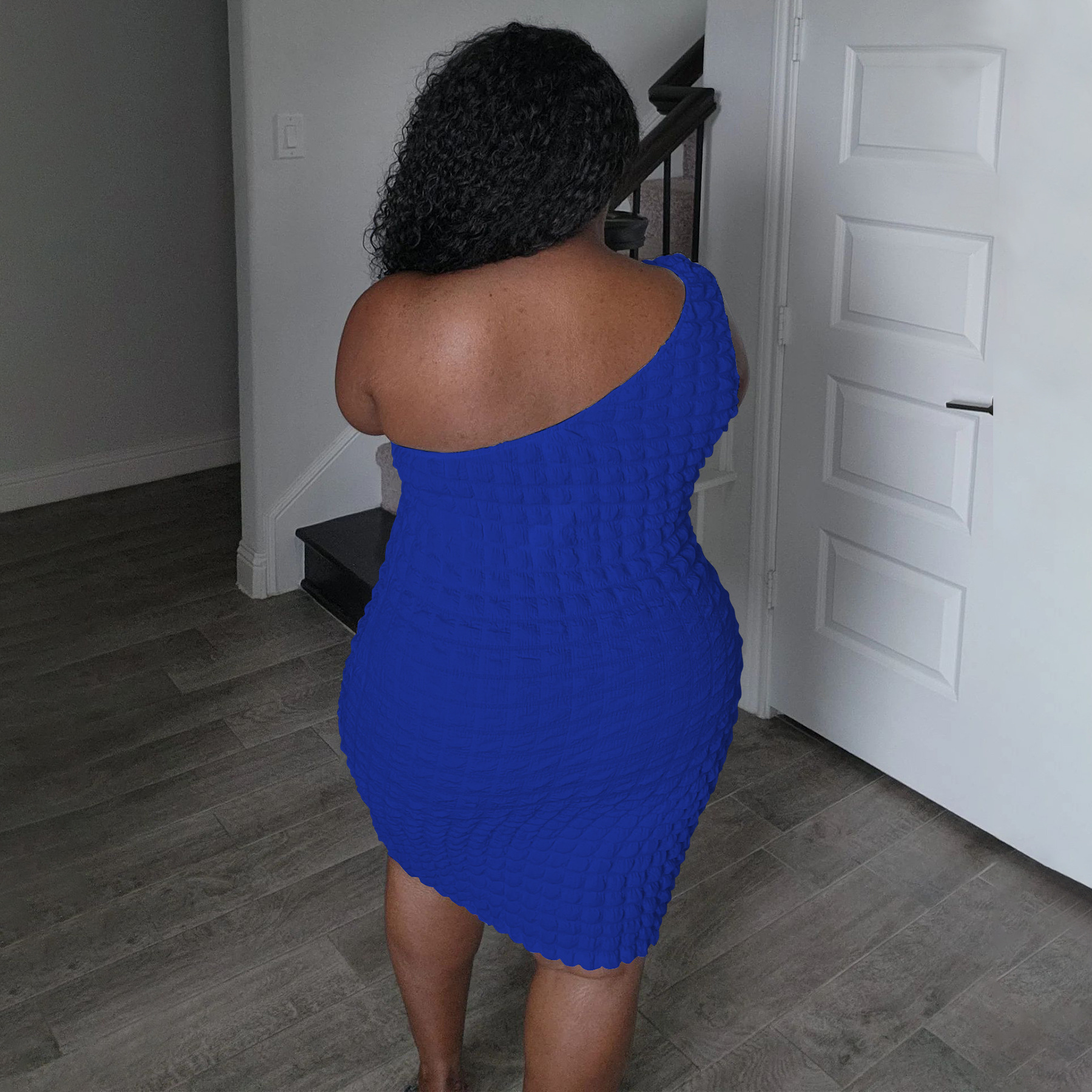 Asymmetrical-neck Solid-color Figure-hugging Sheath Dress