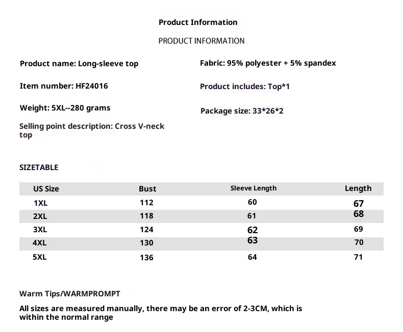 Size: 1XL, 2XL, 3XL, 4XL, 5XL