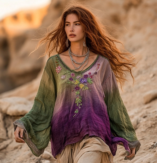 Bohemian Style Patchwork Art Print Loose Shirt