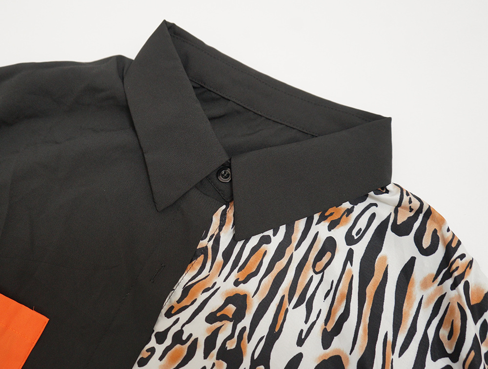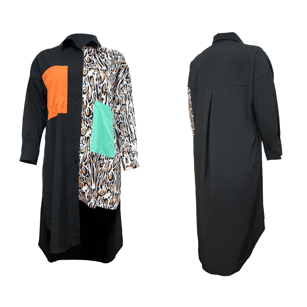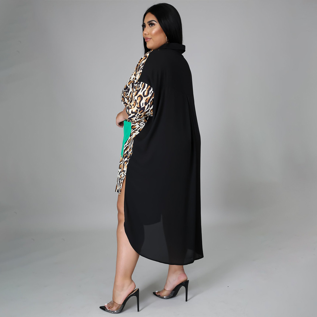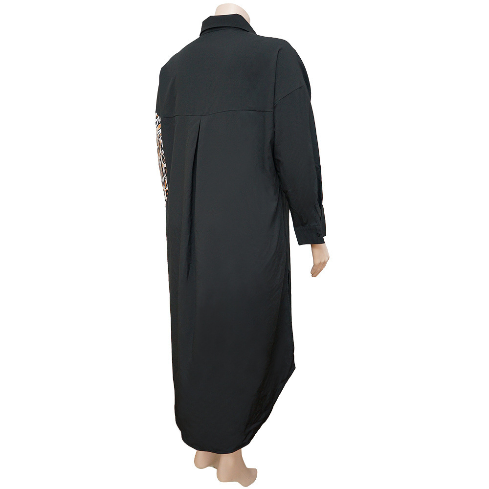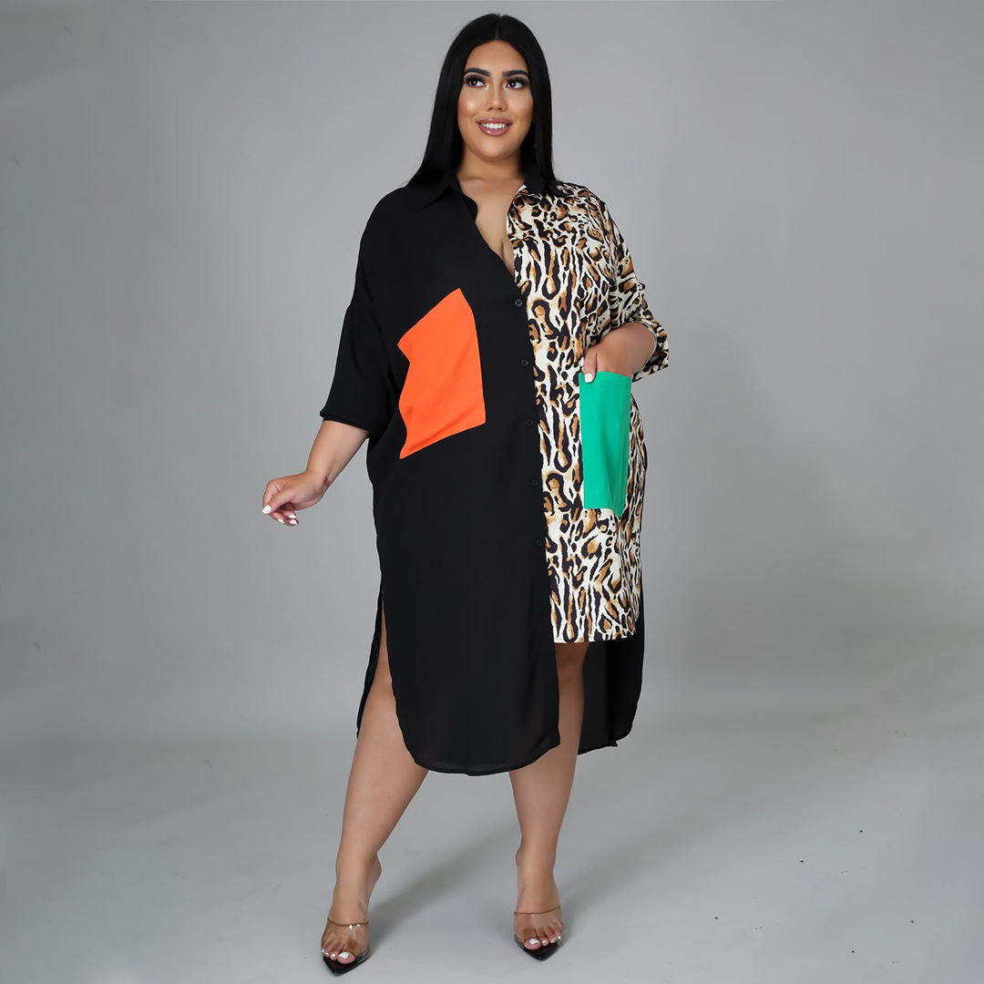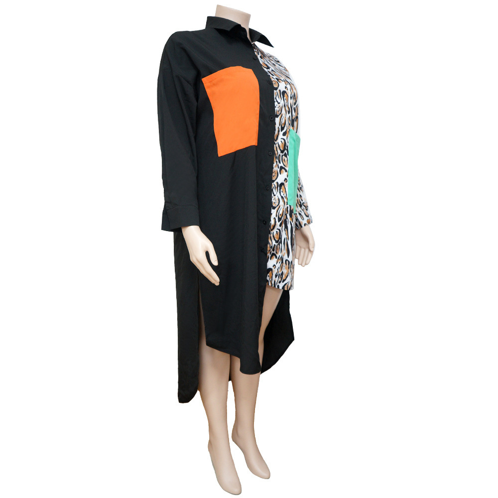 Distinctive Shirt Leopard-print Patchwork With Pockets Plus-size Dress