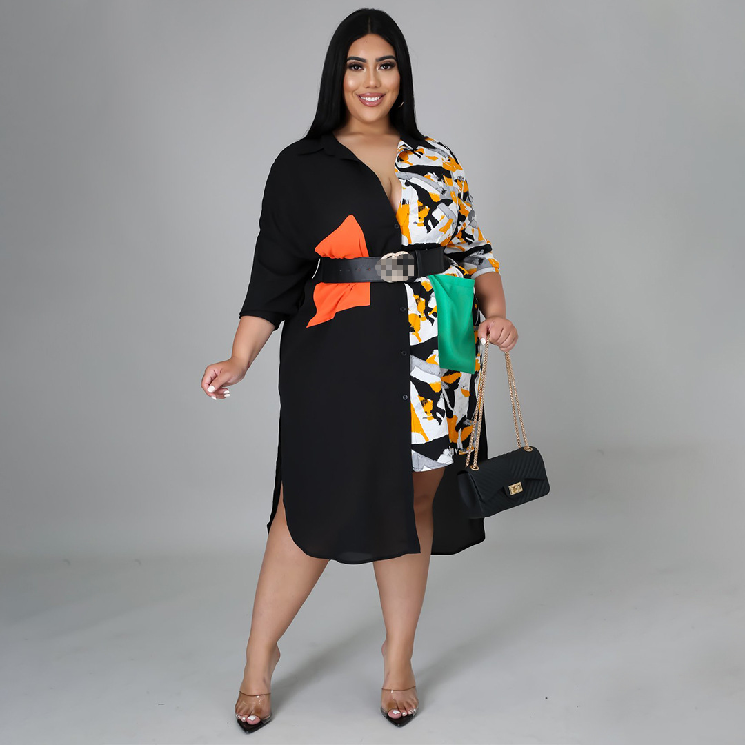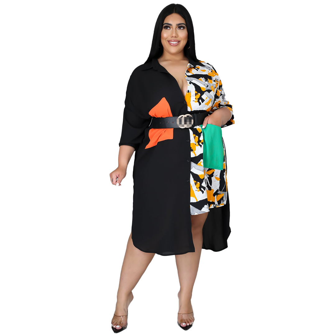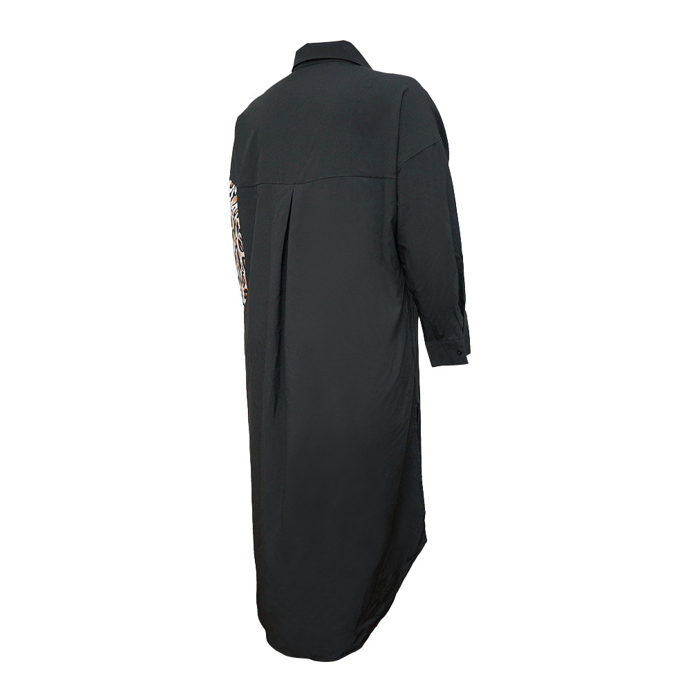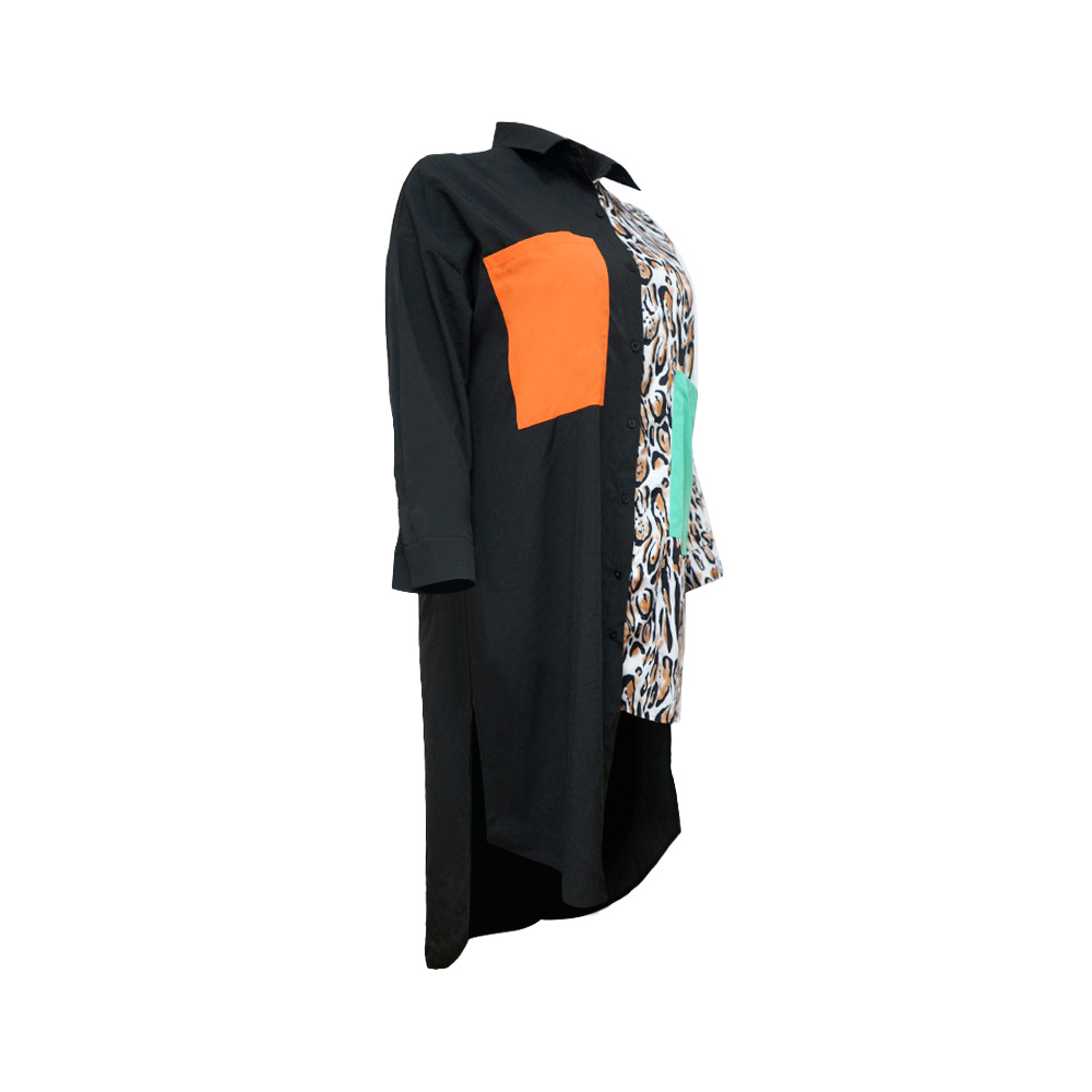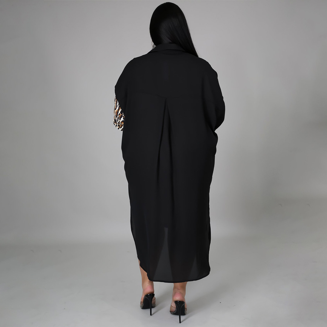 Distinctive Shirt Leopard-print Patchwork With Pockets Plus-size Dress