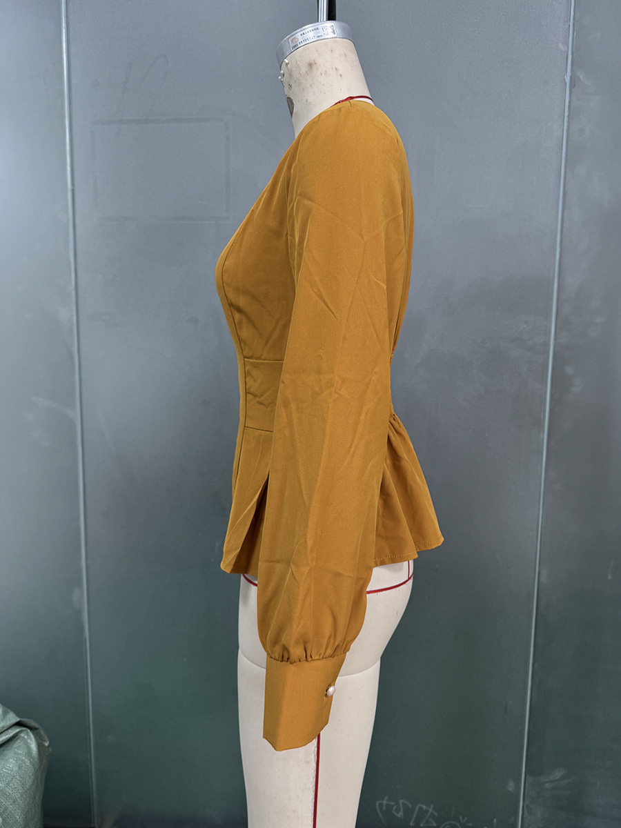 Trendy Elements: Solid color, cinched waist design, patchwork, pleats