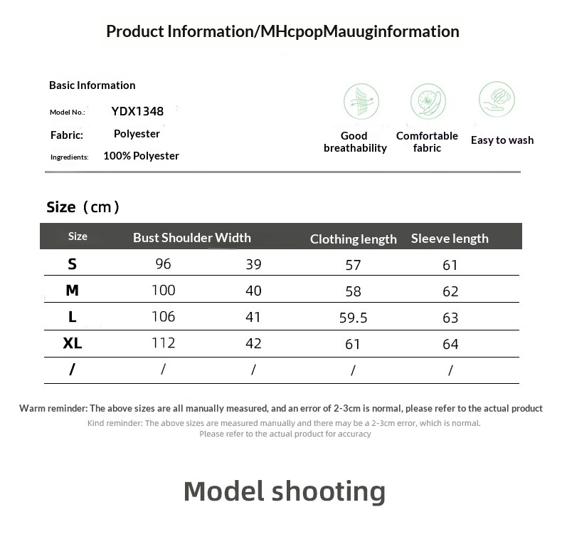 1. Asian sizes are 1 to 2 sizes smaller than European and American people. Choose the larger size if your size between two sizes. Please allow 2-3cm differences due to manual measurement. 2. Please check the size chart carefully before you buy the item, if you don't know how to choose size, please contact our customer service. 3.As you know, the different computers display colors differently, the color of the actual item may vary slightly from the following images.