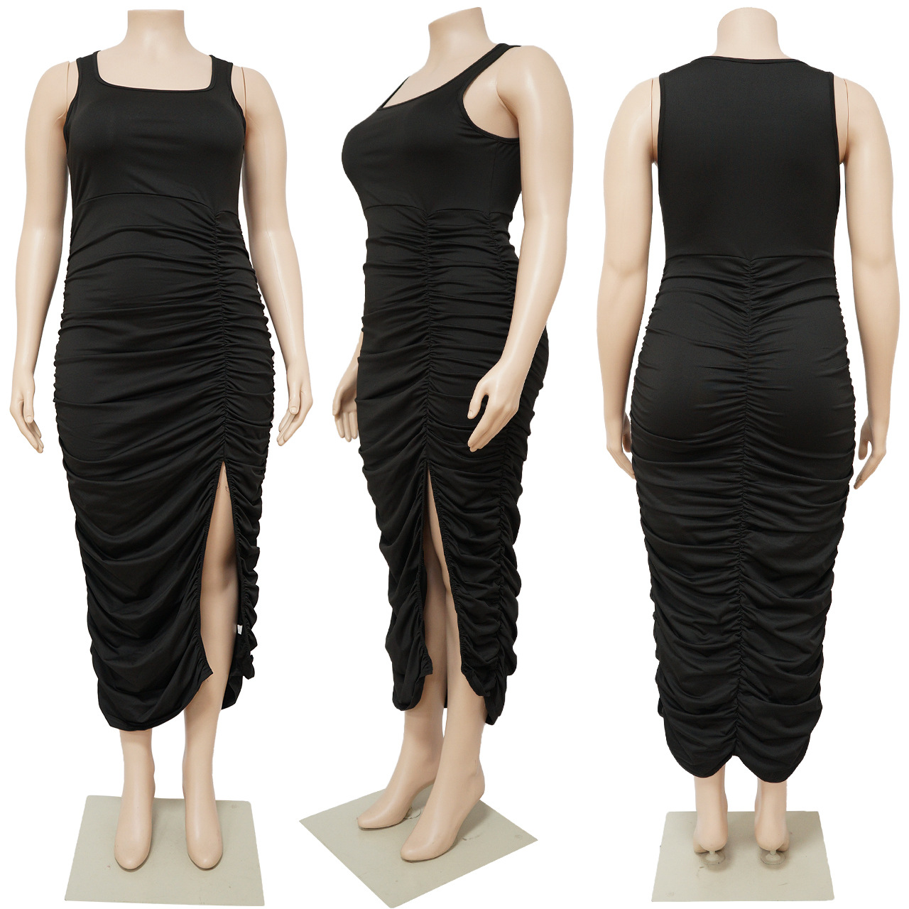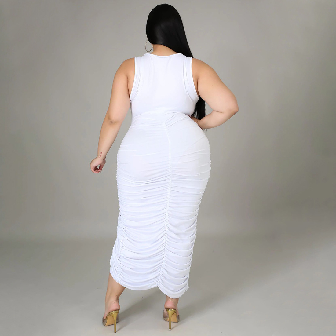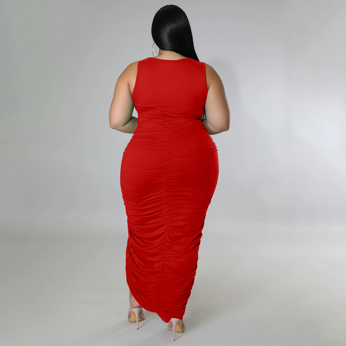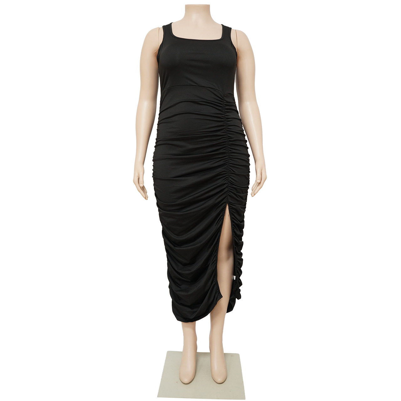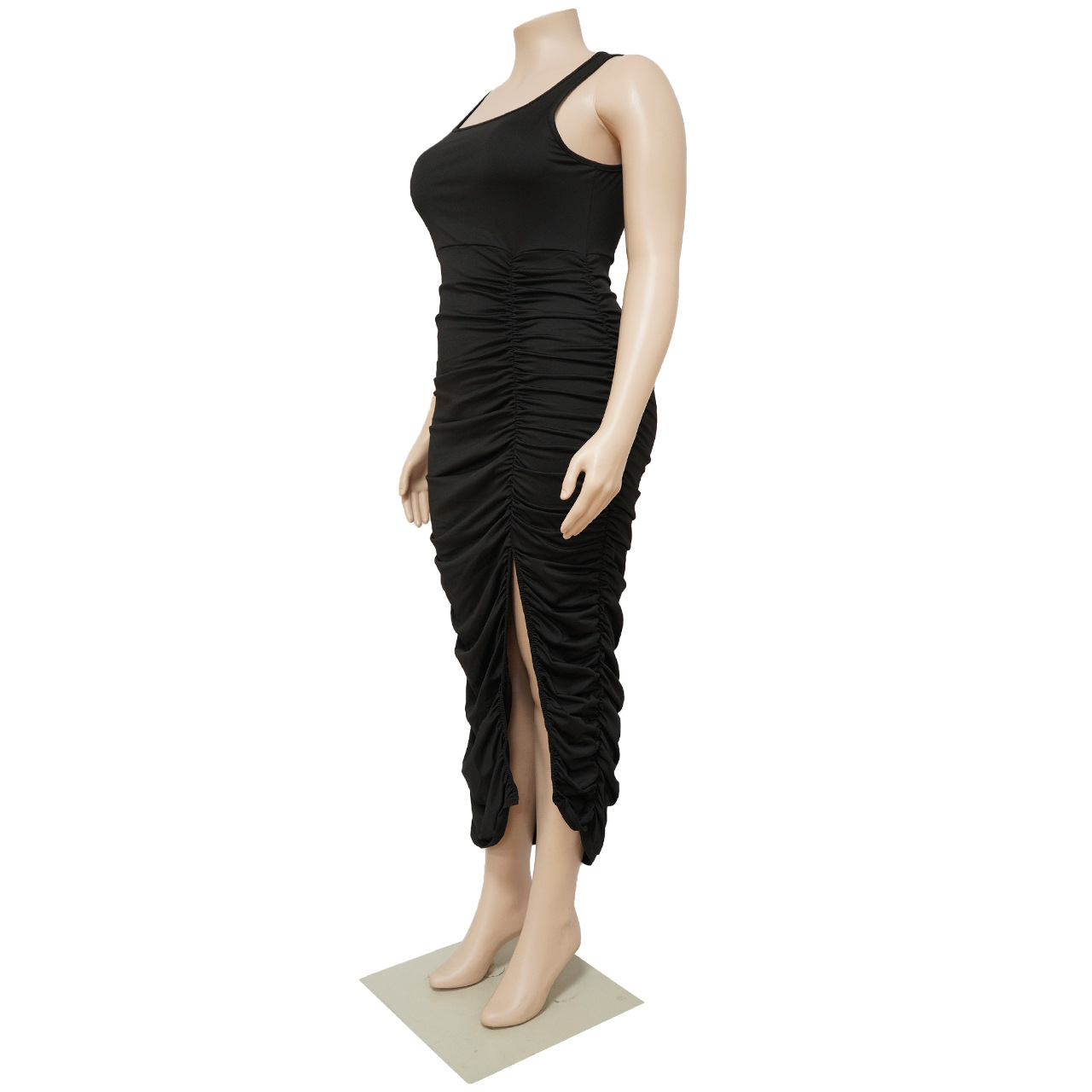 New Solid-color Sleeveless Slim-fit Pleated Dress