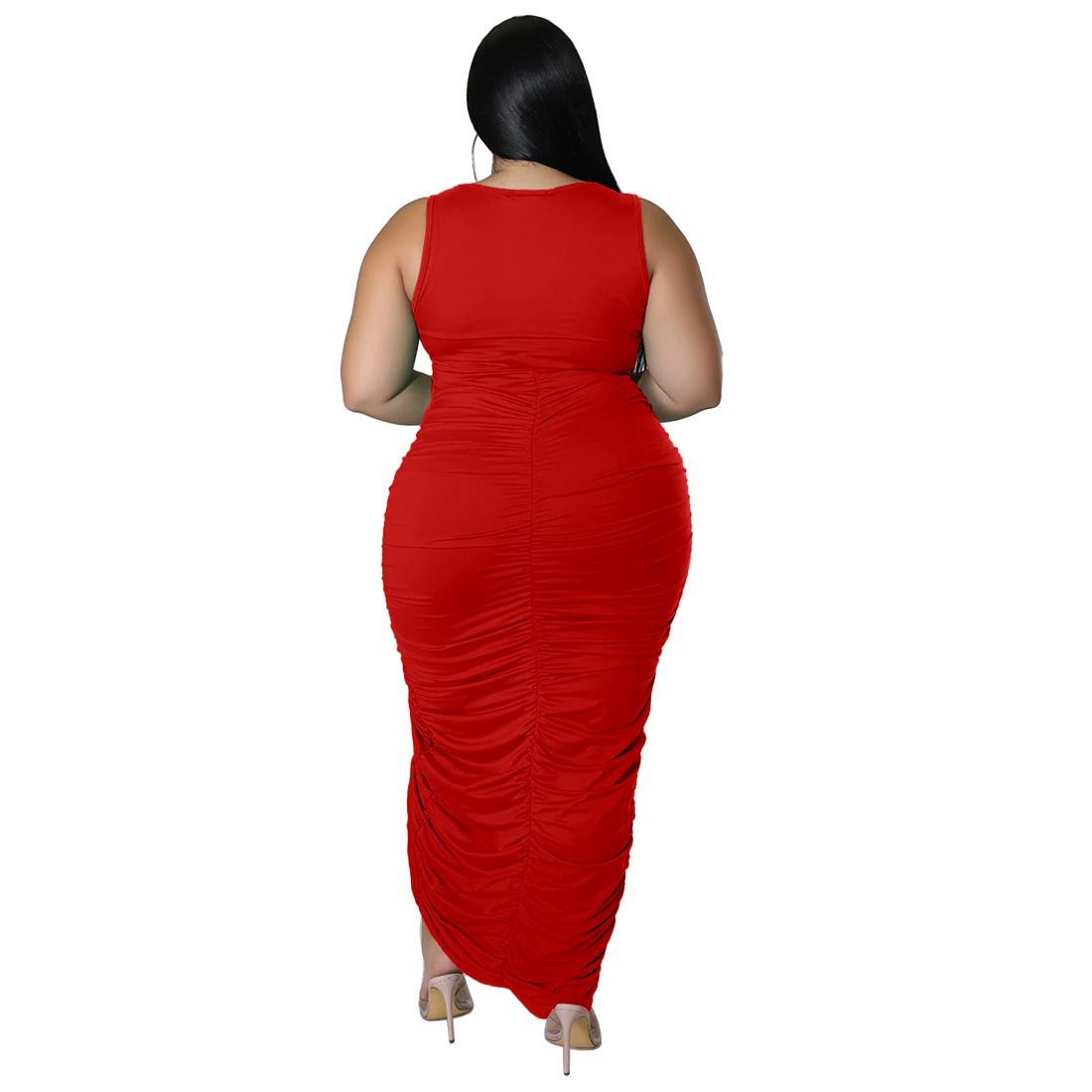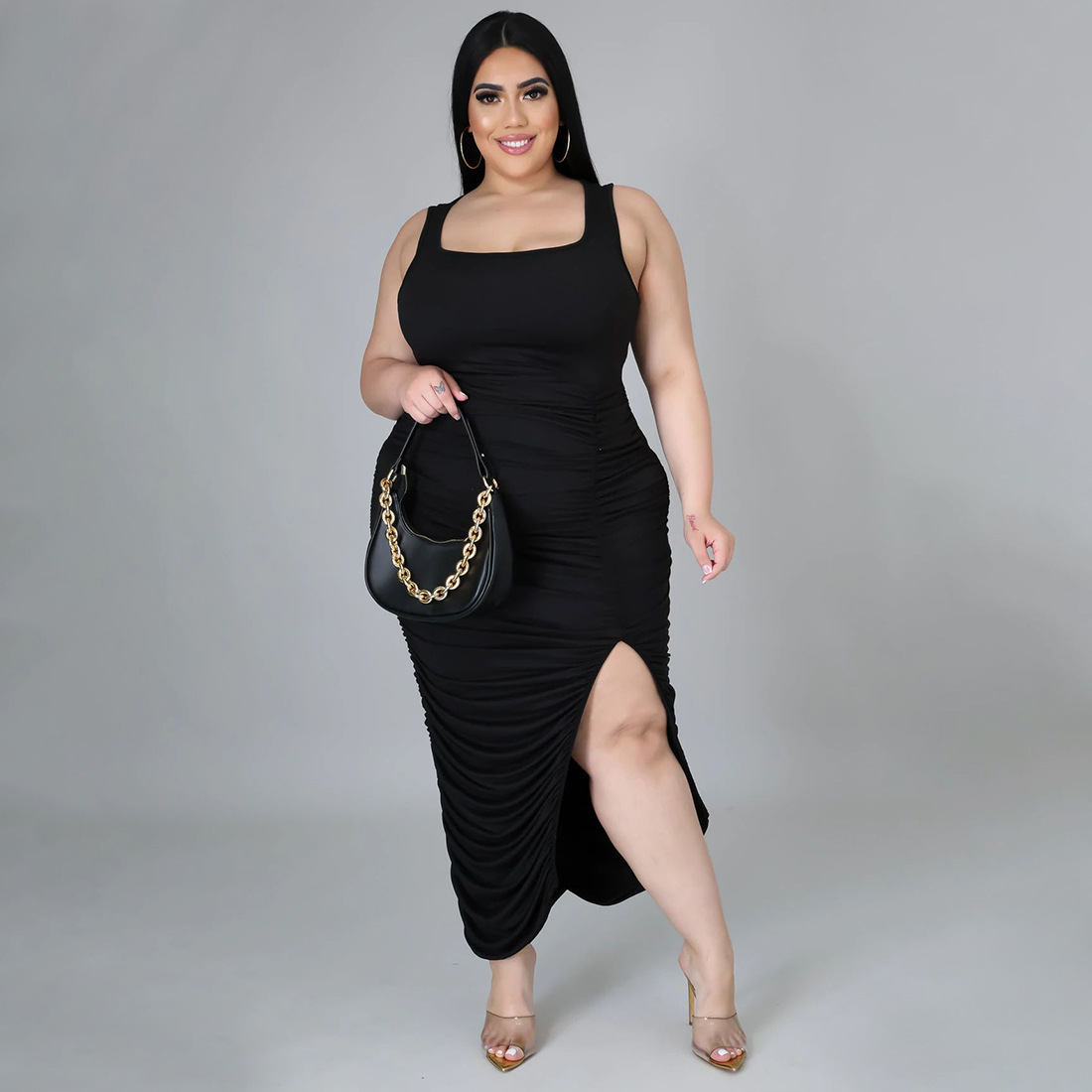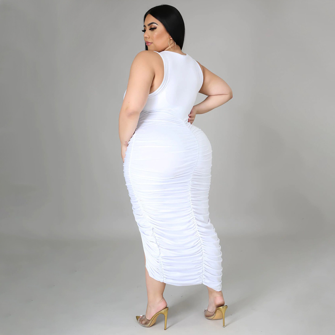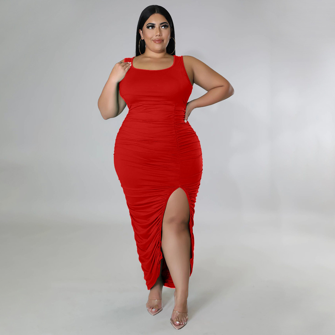 New Solid-color Sleeveless Slim-fit Pleated Dress