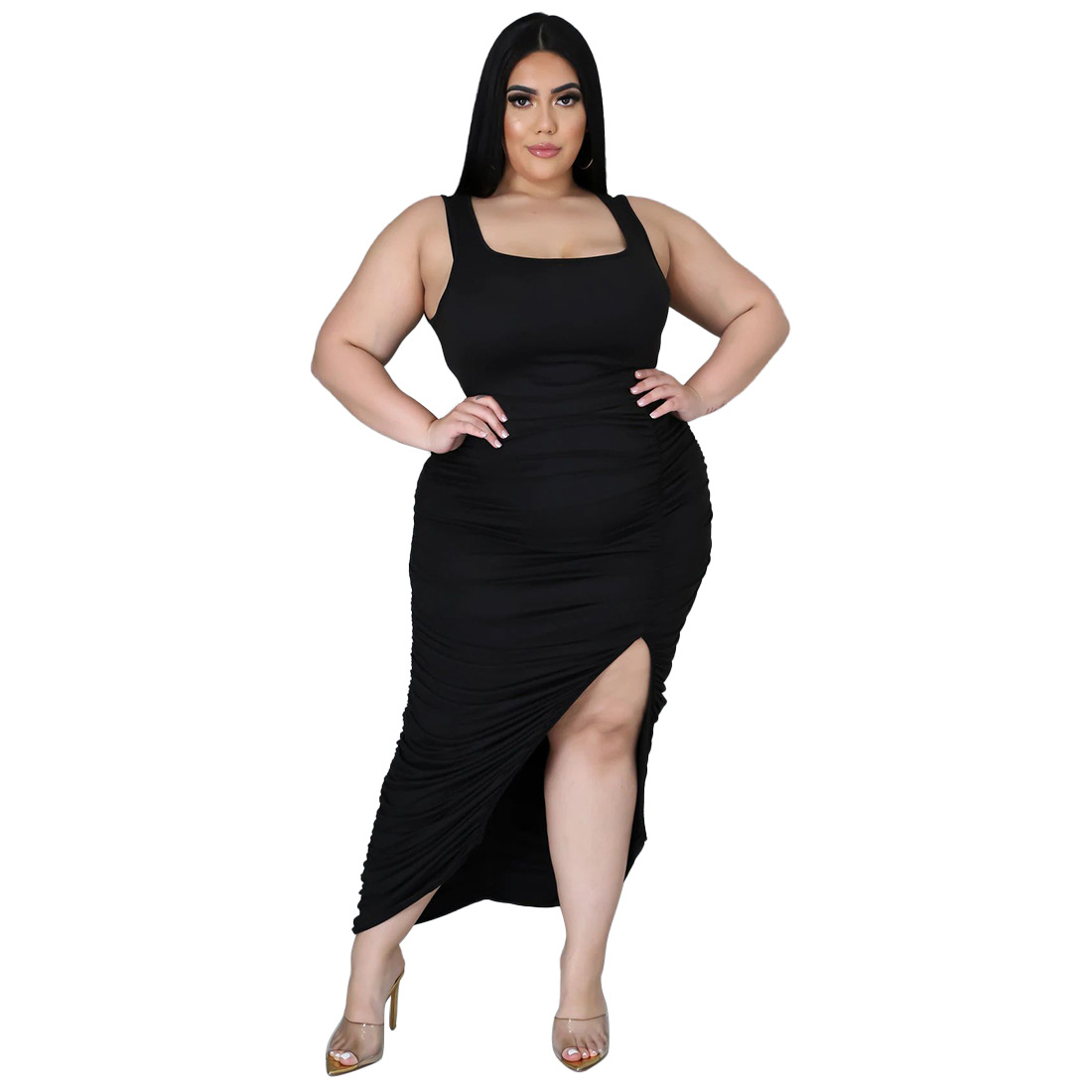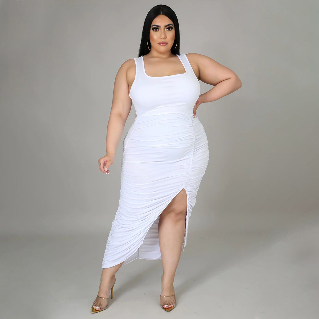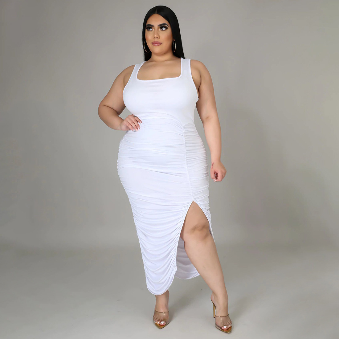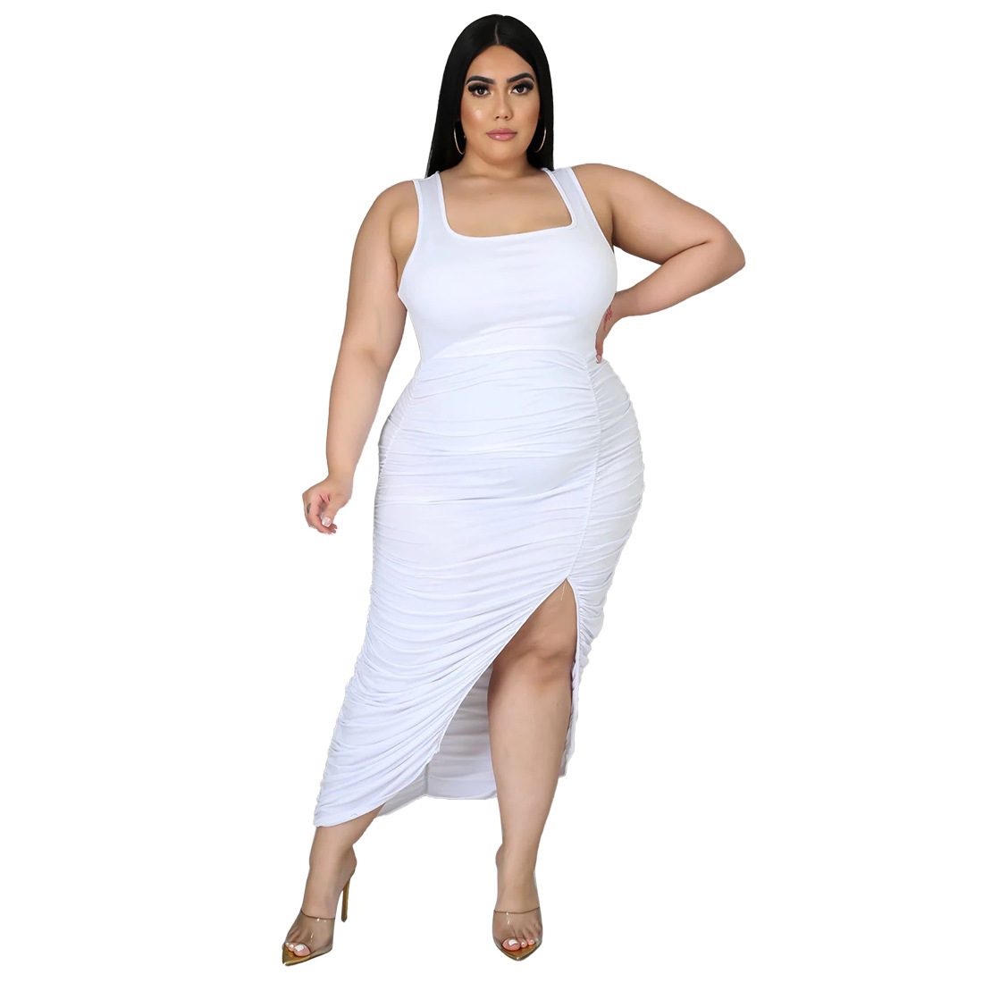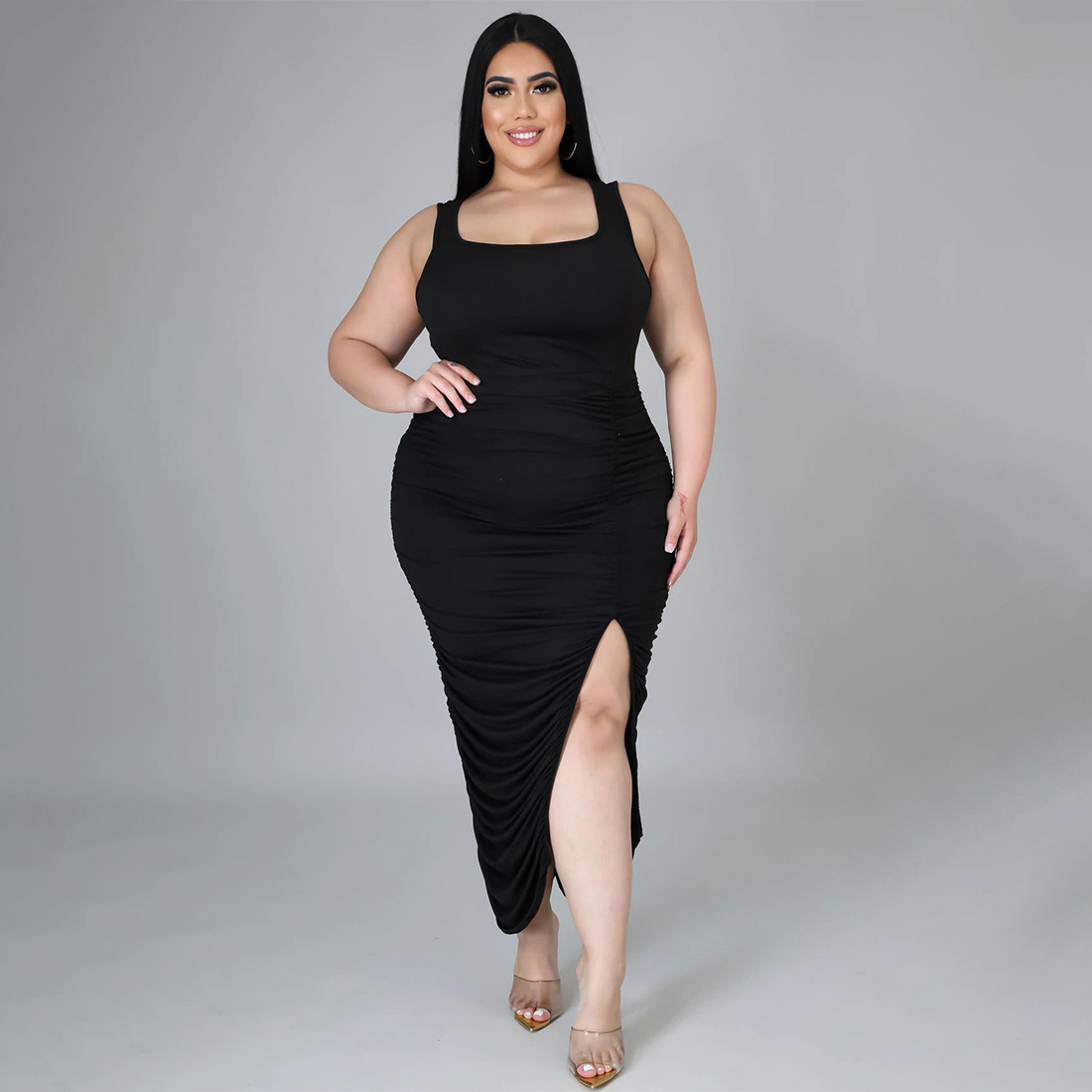 New Solid-color Sleeveless Slim-fit Pleated Dress