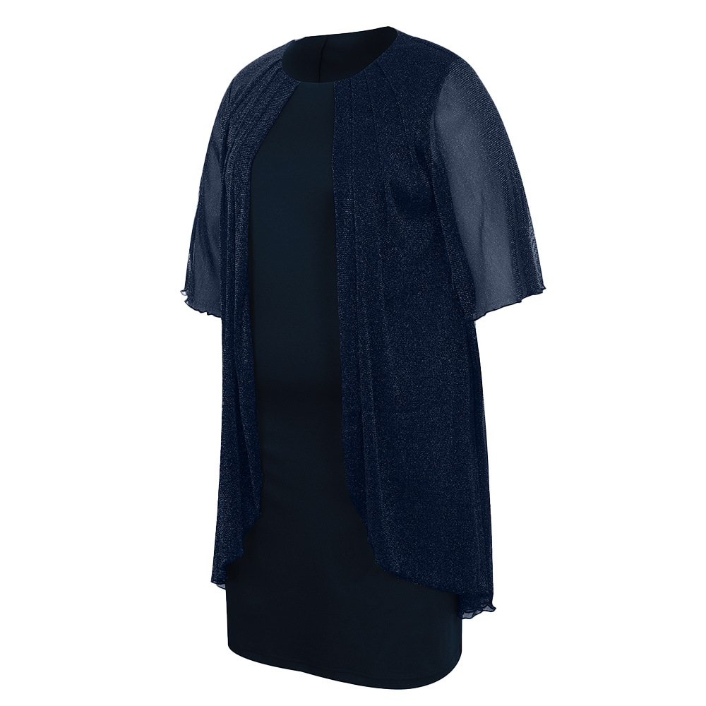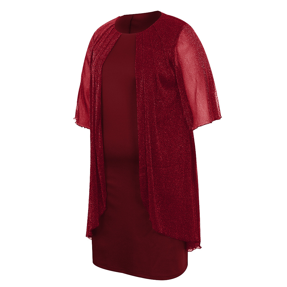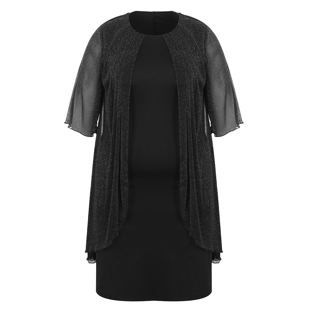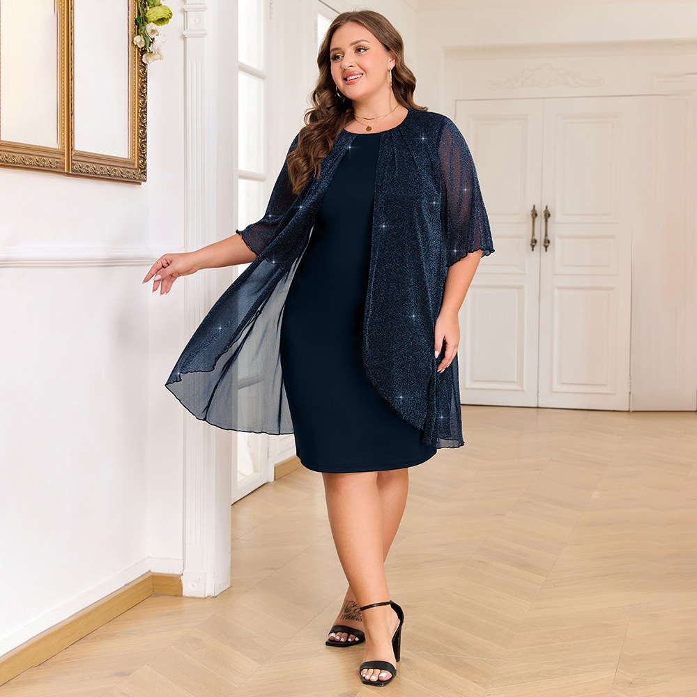 Plus Size Silver Shiny Mesh Elegant Dress