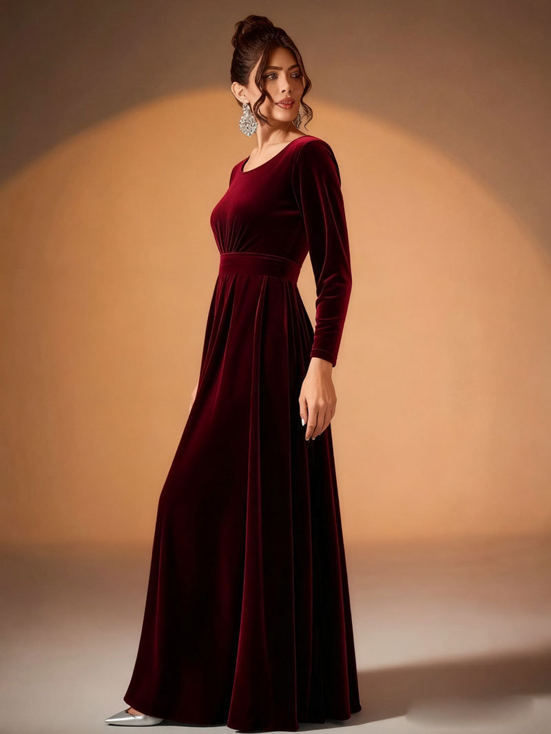 Plus Size Velvet Long Sleeve Dress With Pleats