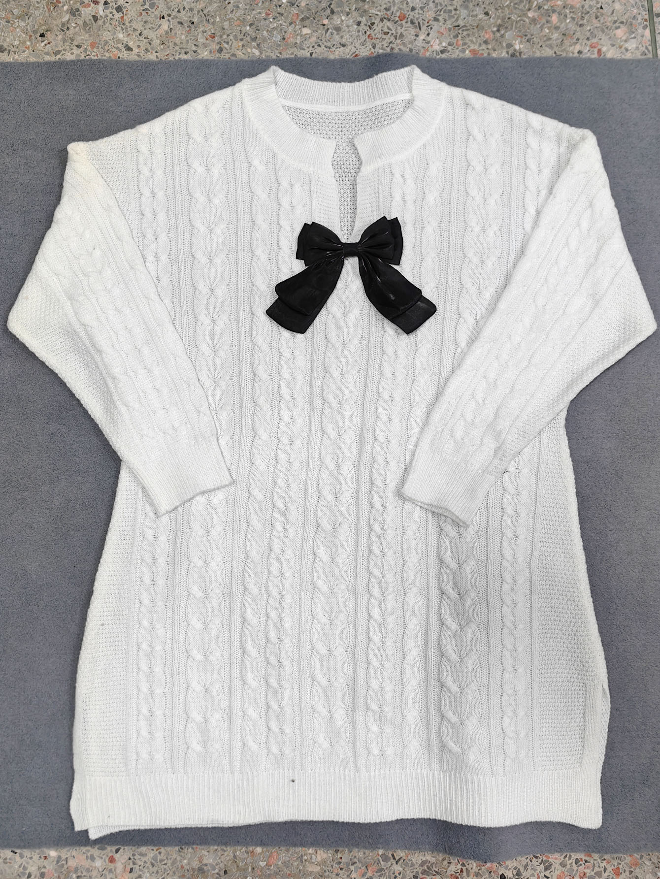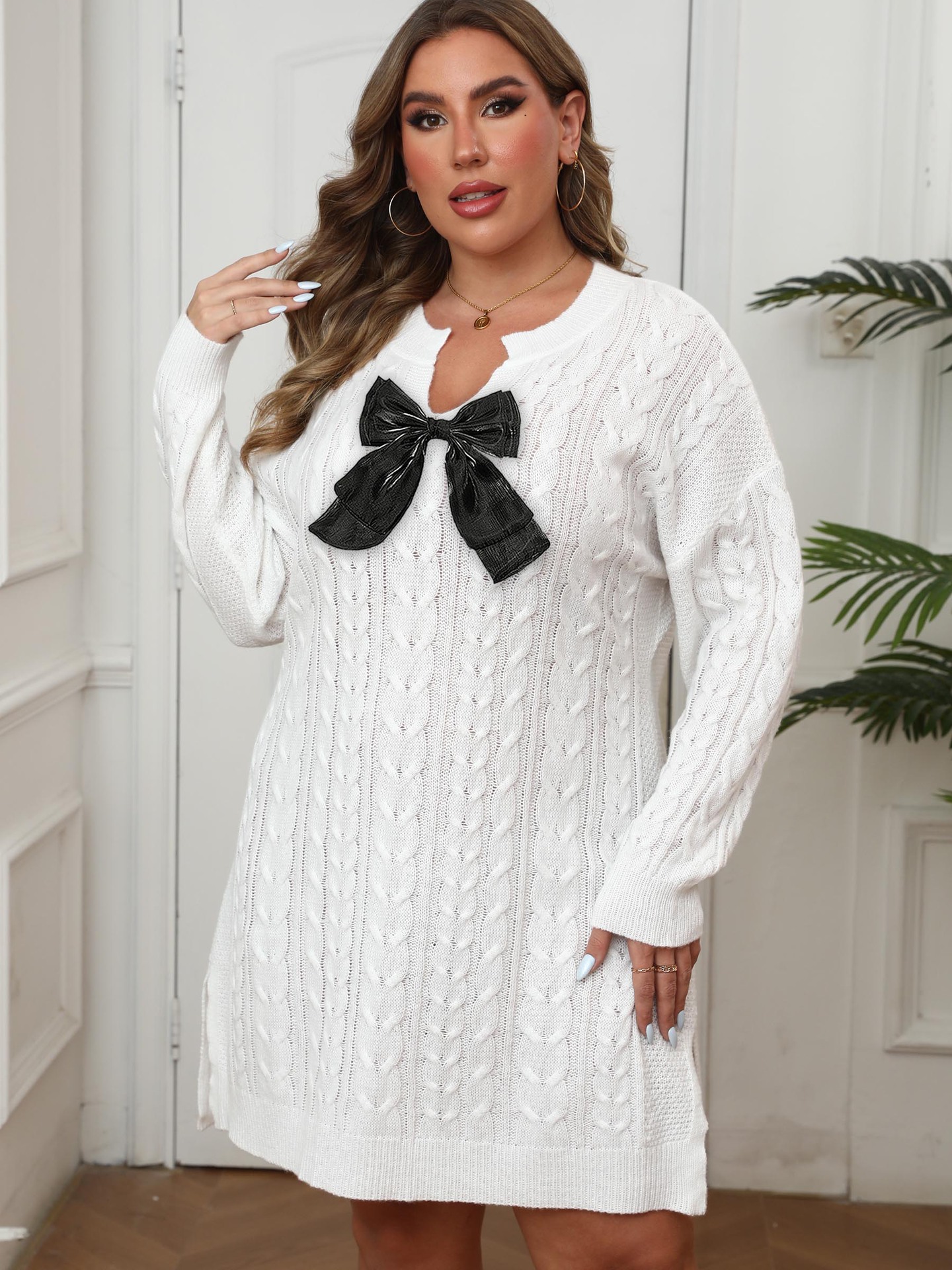 Plus-size Women's V-neck Cable Knit Sweater Solid Color Dress