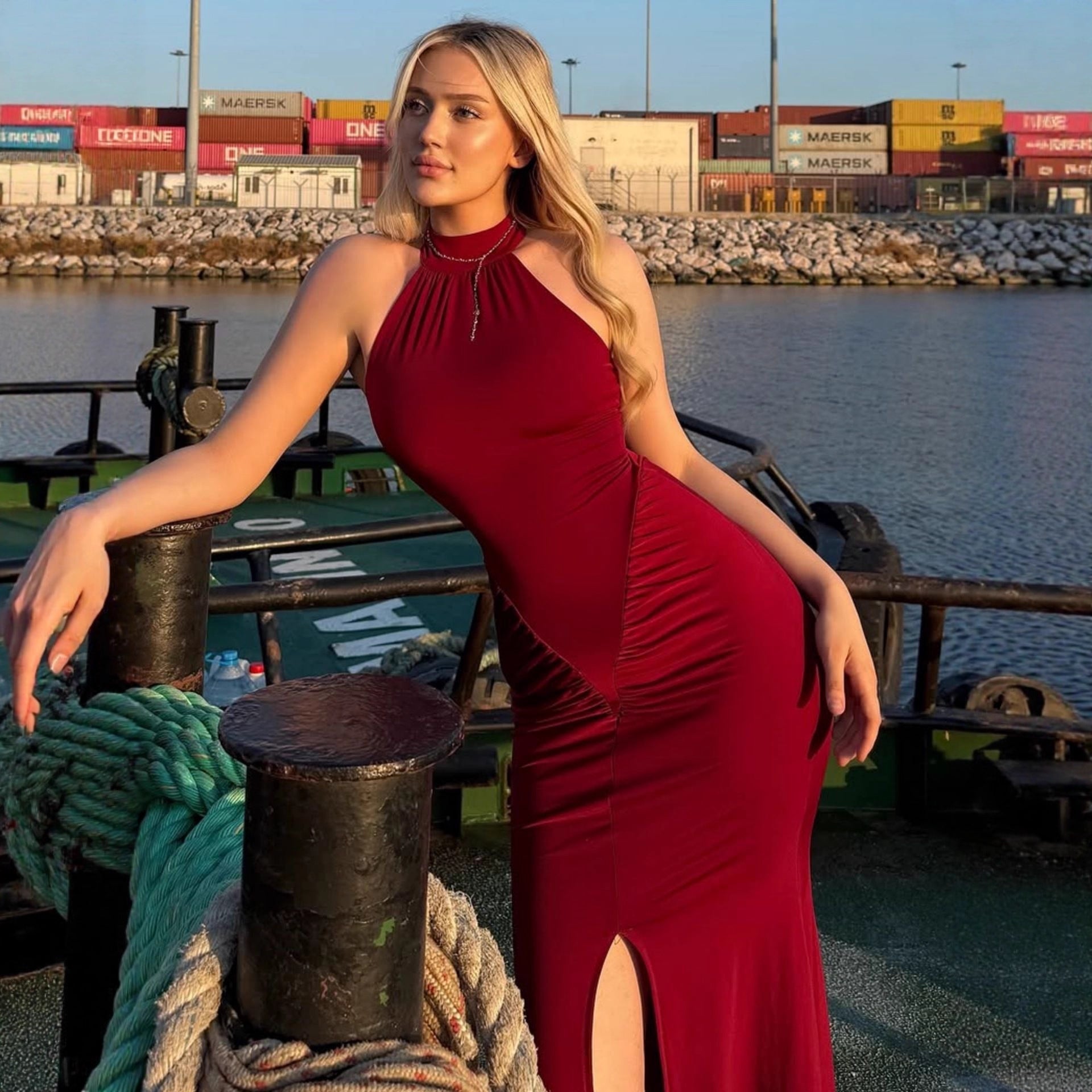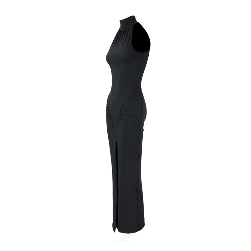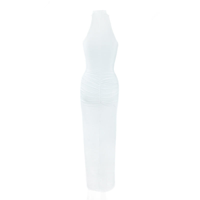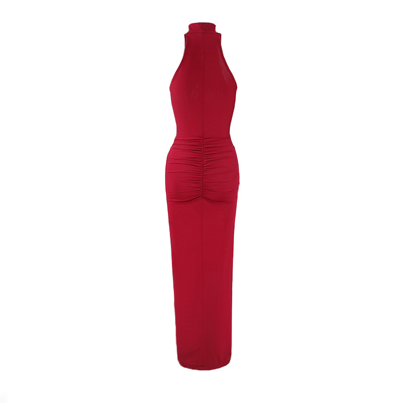Rare Sleeveless Bandeau Figure-hugging Pleated Sli Elegant Sheath Dress