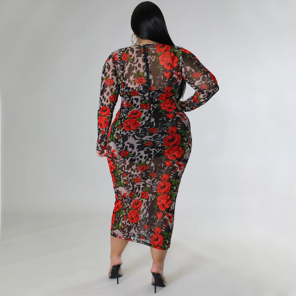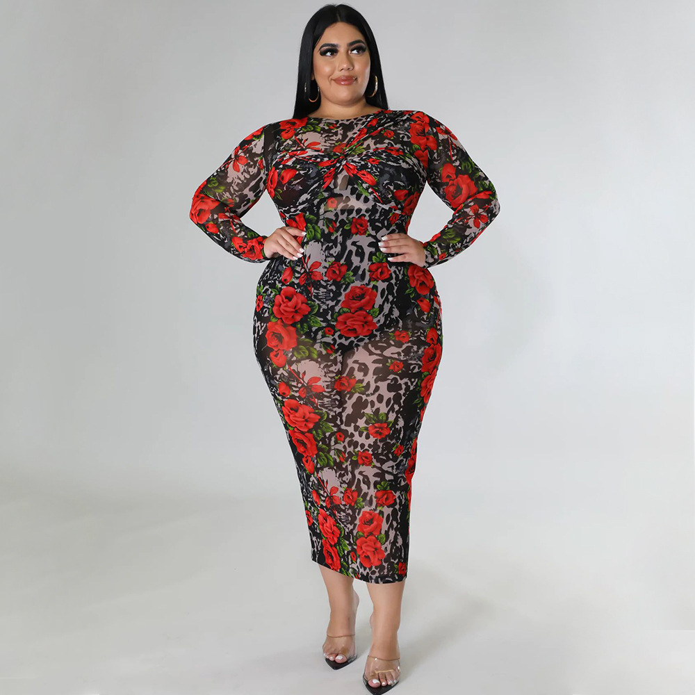 Round-neck Stretchy See-through Sheath Dress With A Printed Design