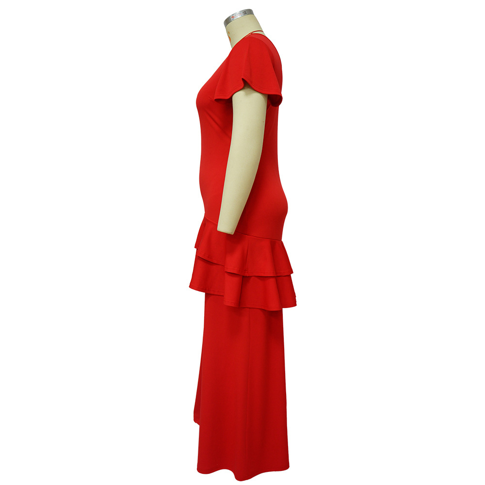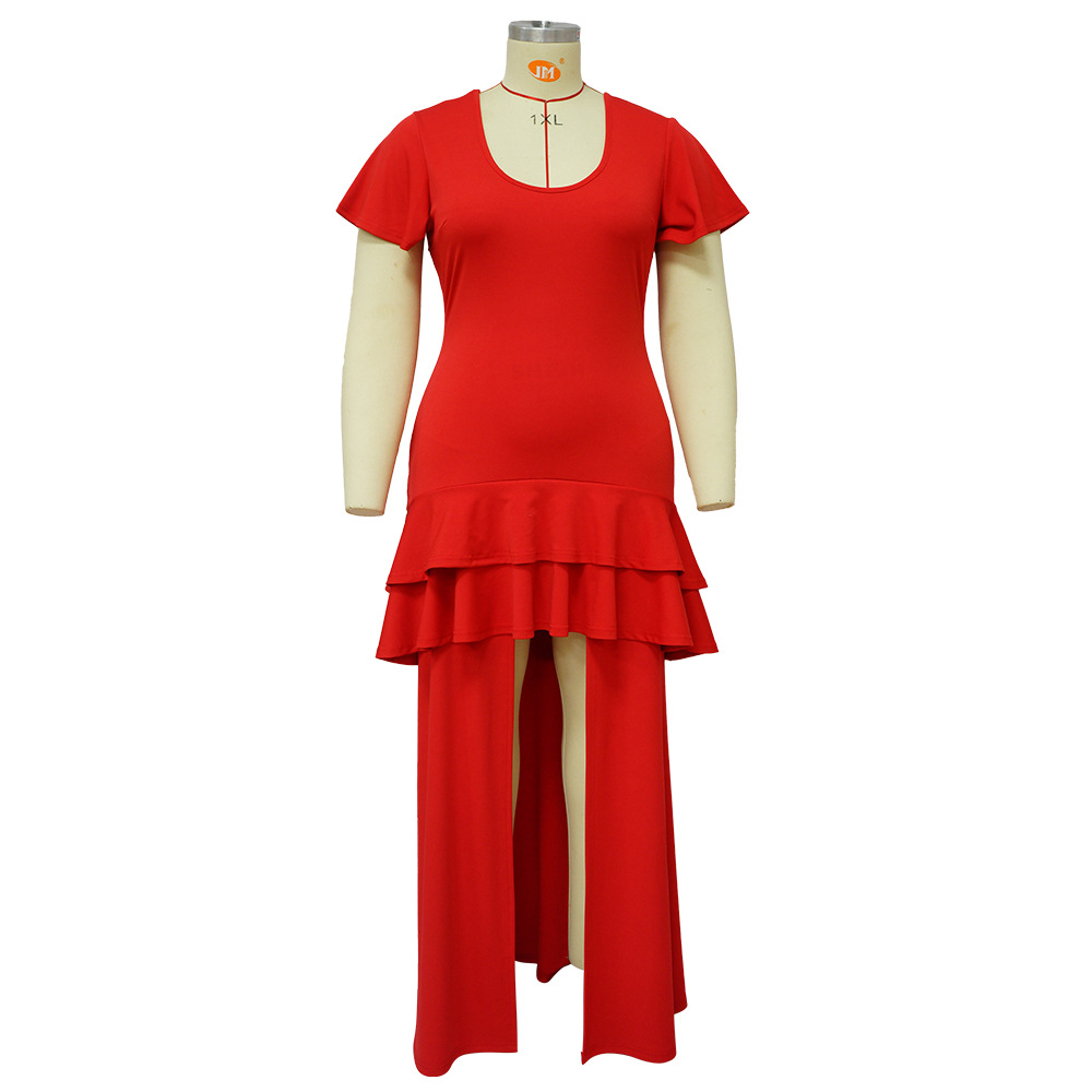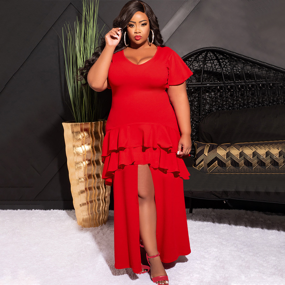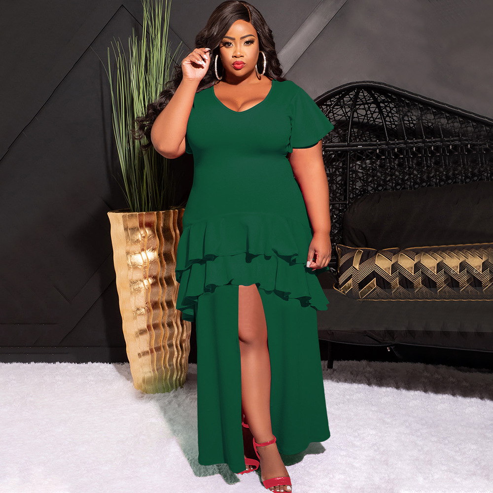 Solid-color Layered Dress With A High Slit On The Front And Ruffled Hem
