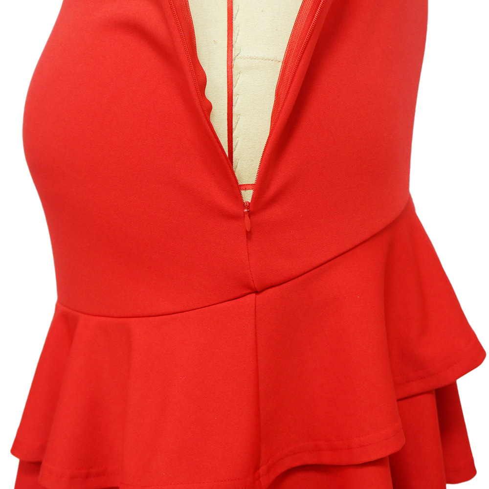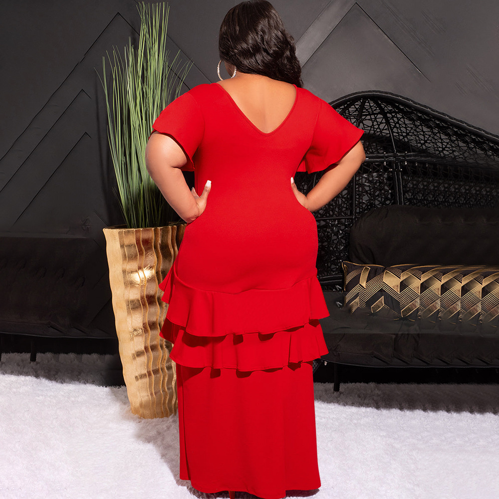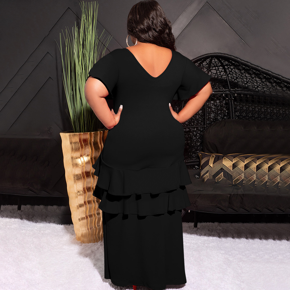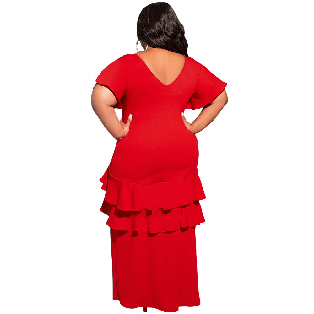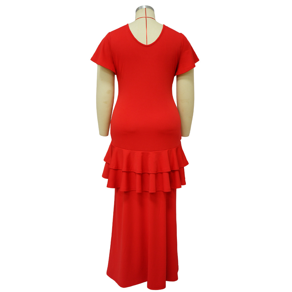 Solid-color Layered Dress With A High Slit On The Front And Ruffled Hem