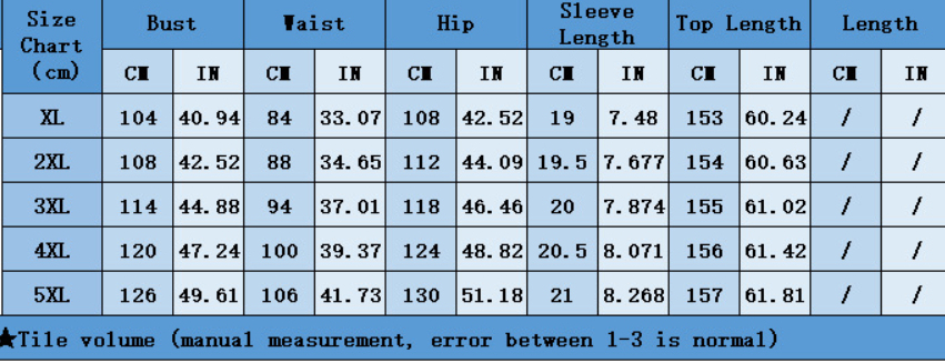 Sizes: XL, 2XL, 3XL, 4XL, 5XL