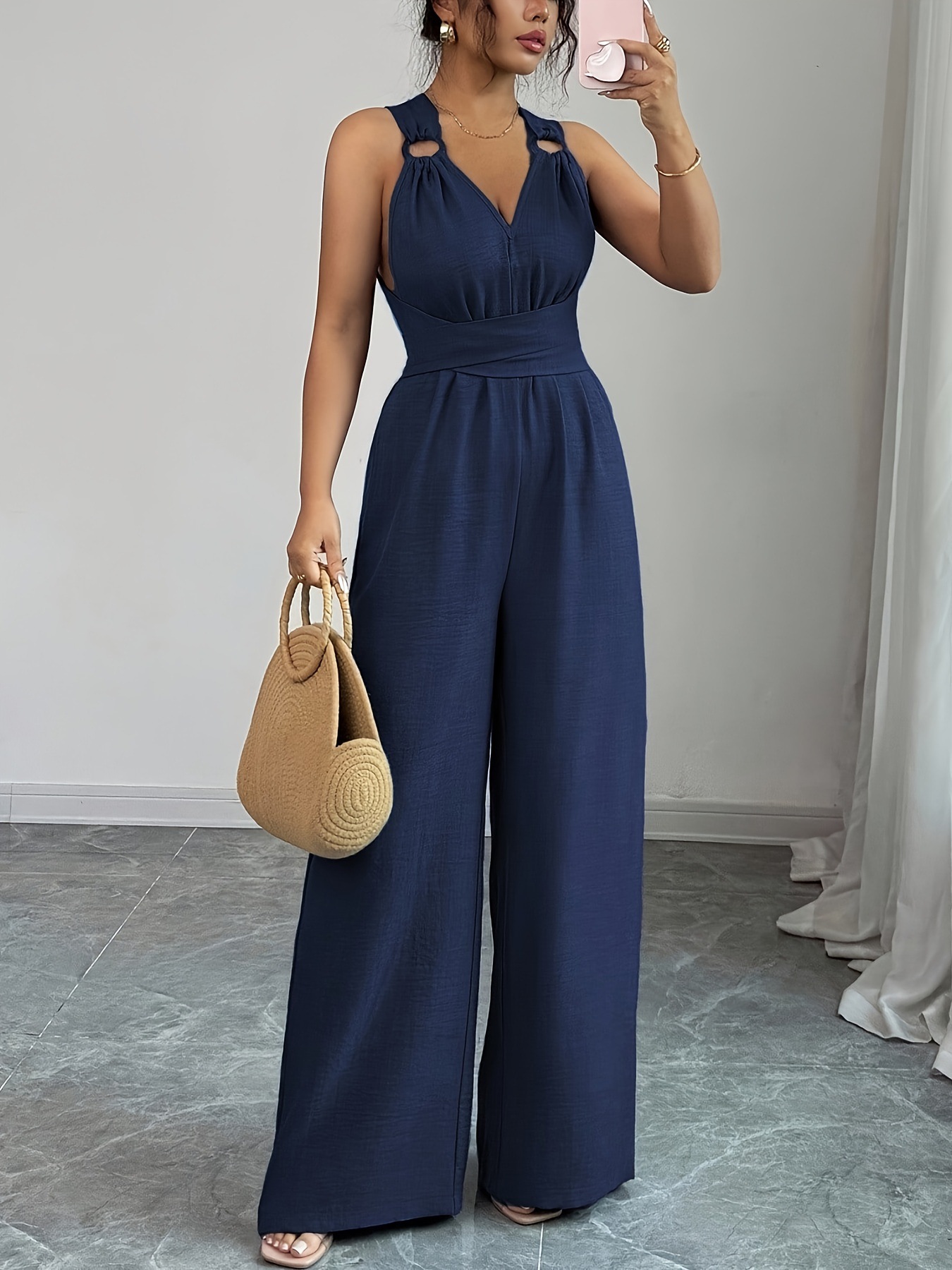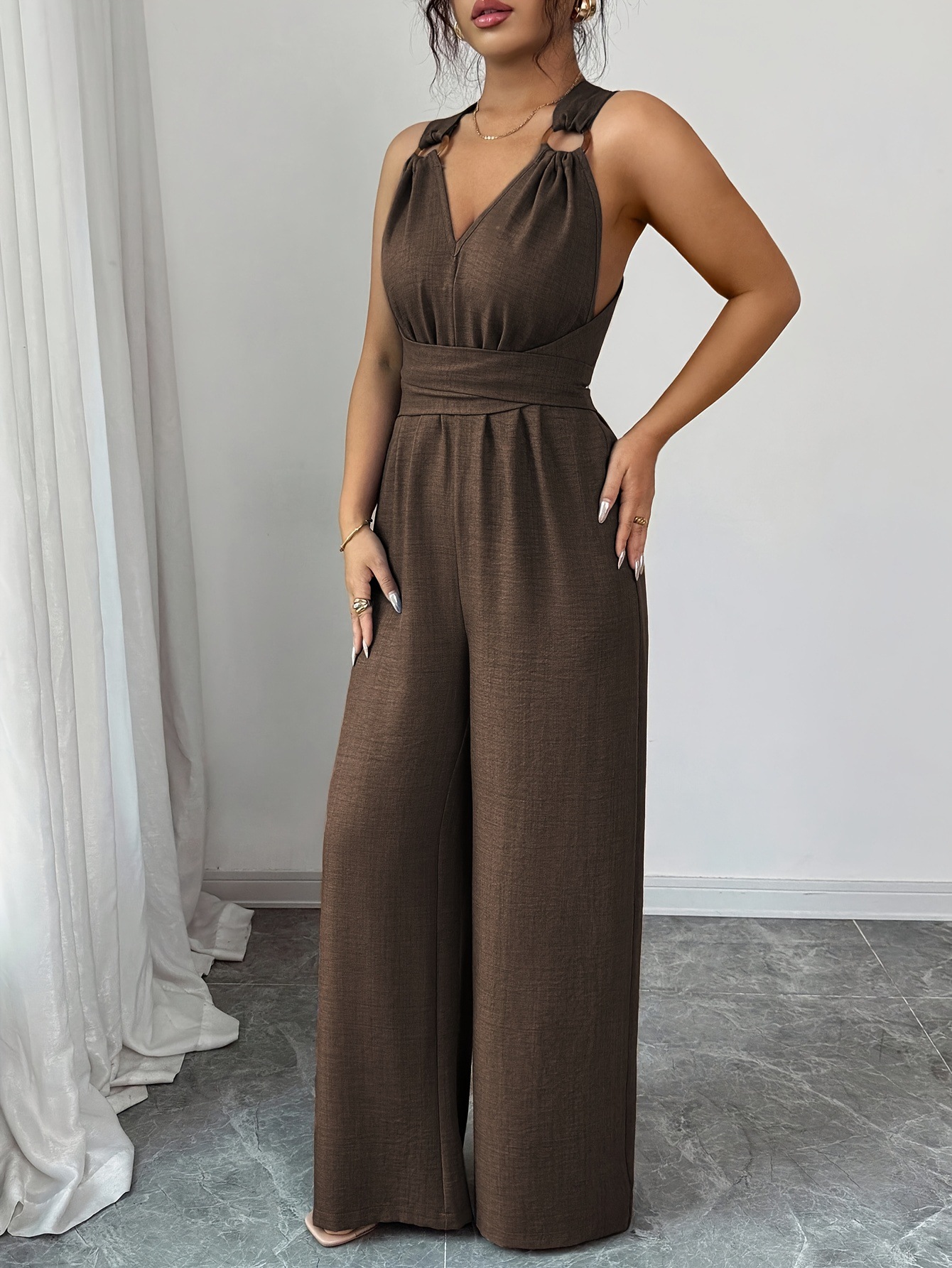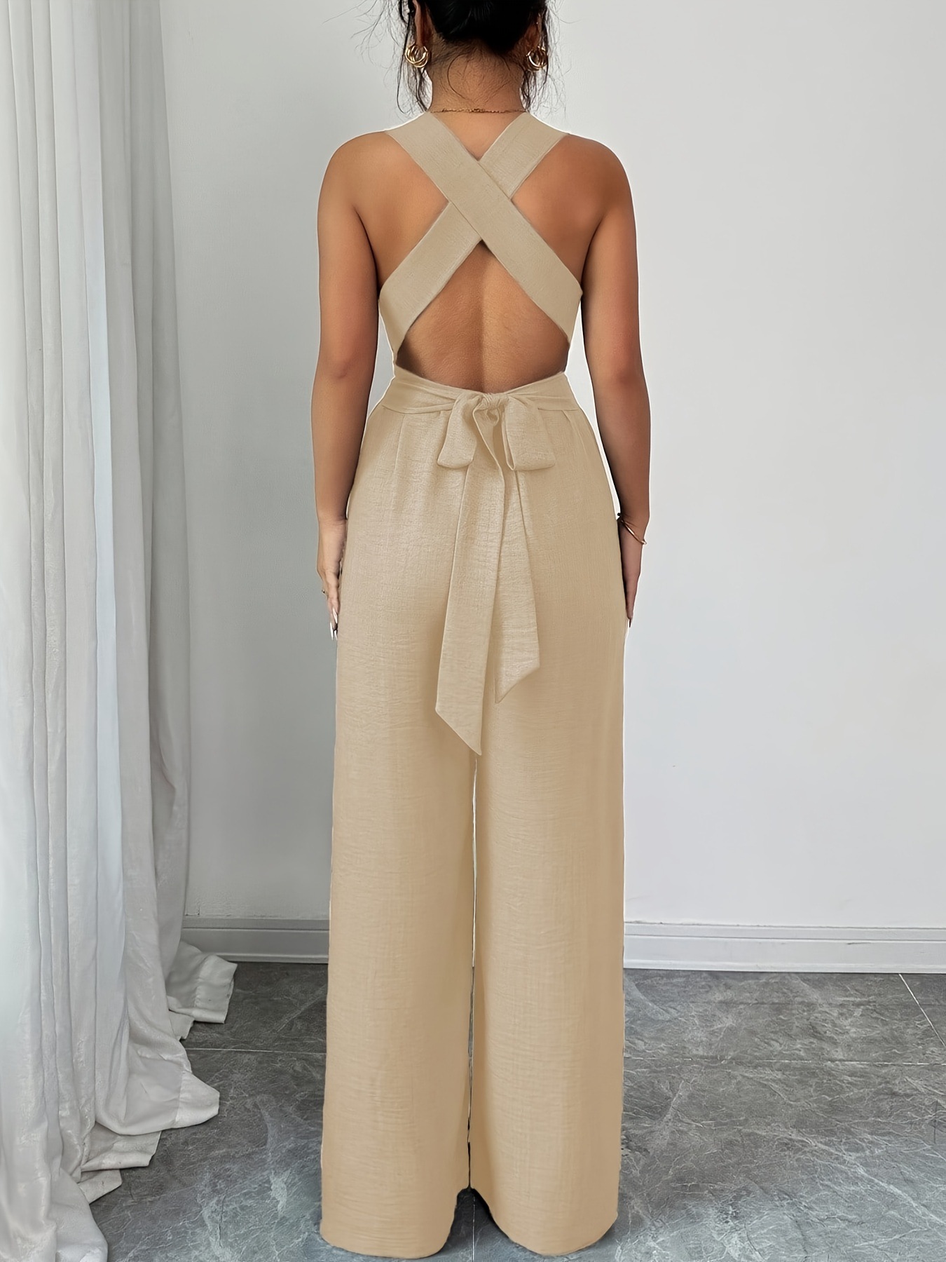 V-neck Backless Crossover-waistband Wide-leg Jumpsuit