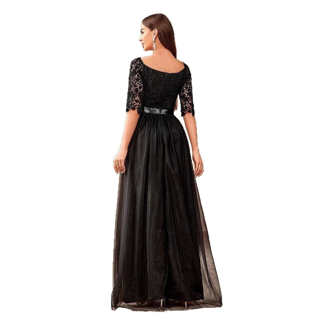V-neck Lace Off Shoulder Princess Dress