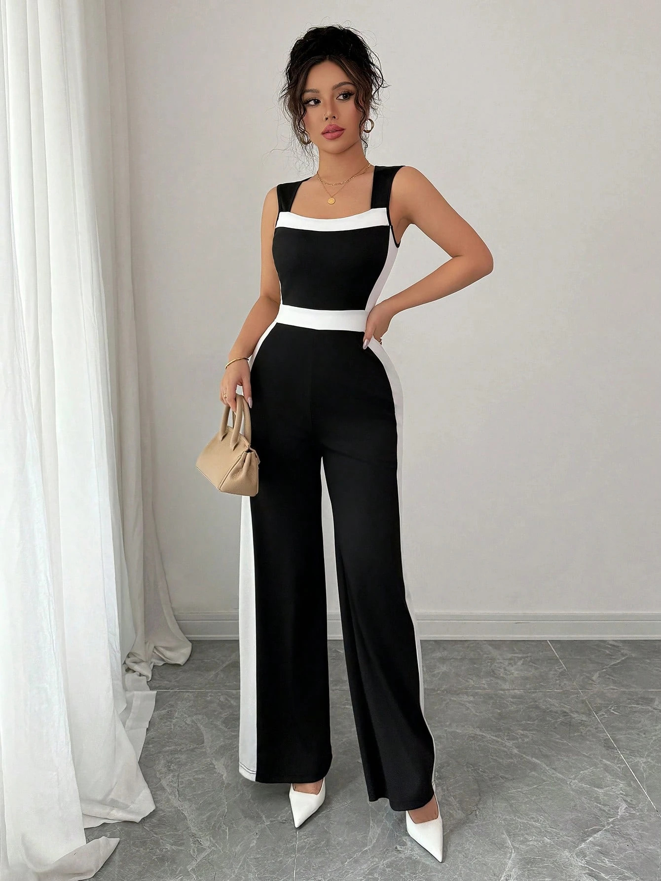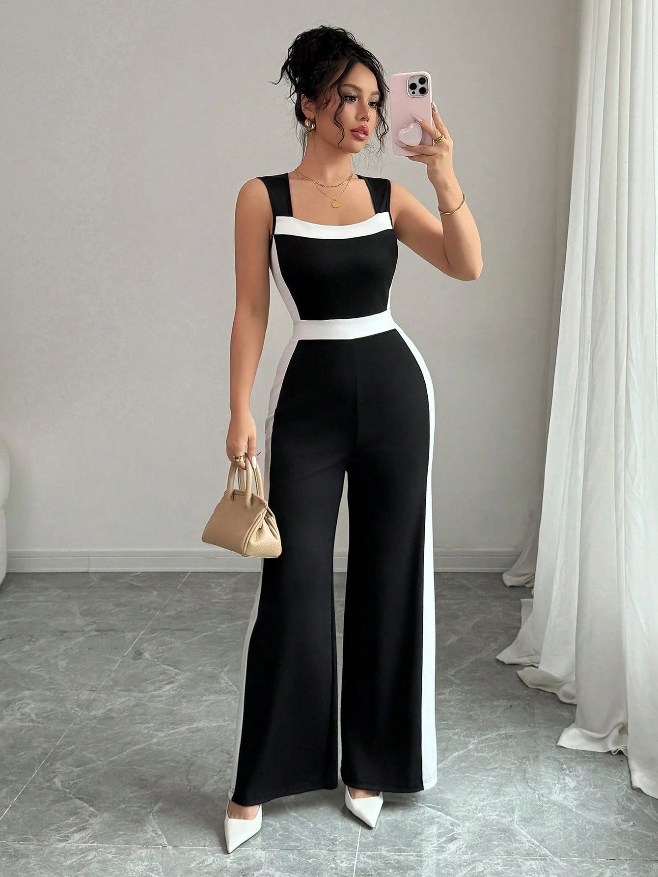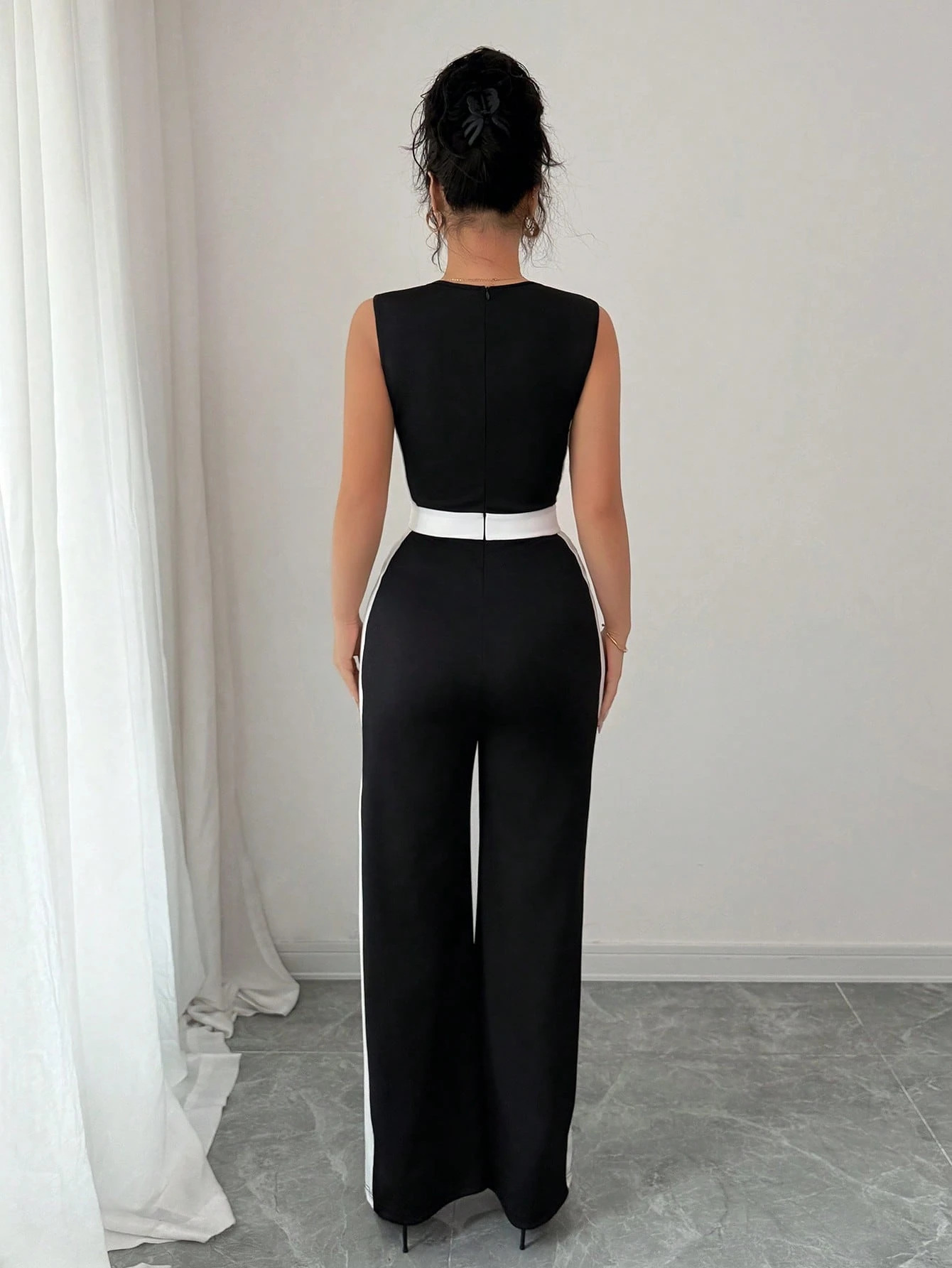 Women's Color-block Sleeveless Wide-leg Jumpsuit