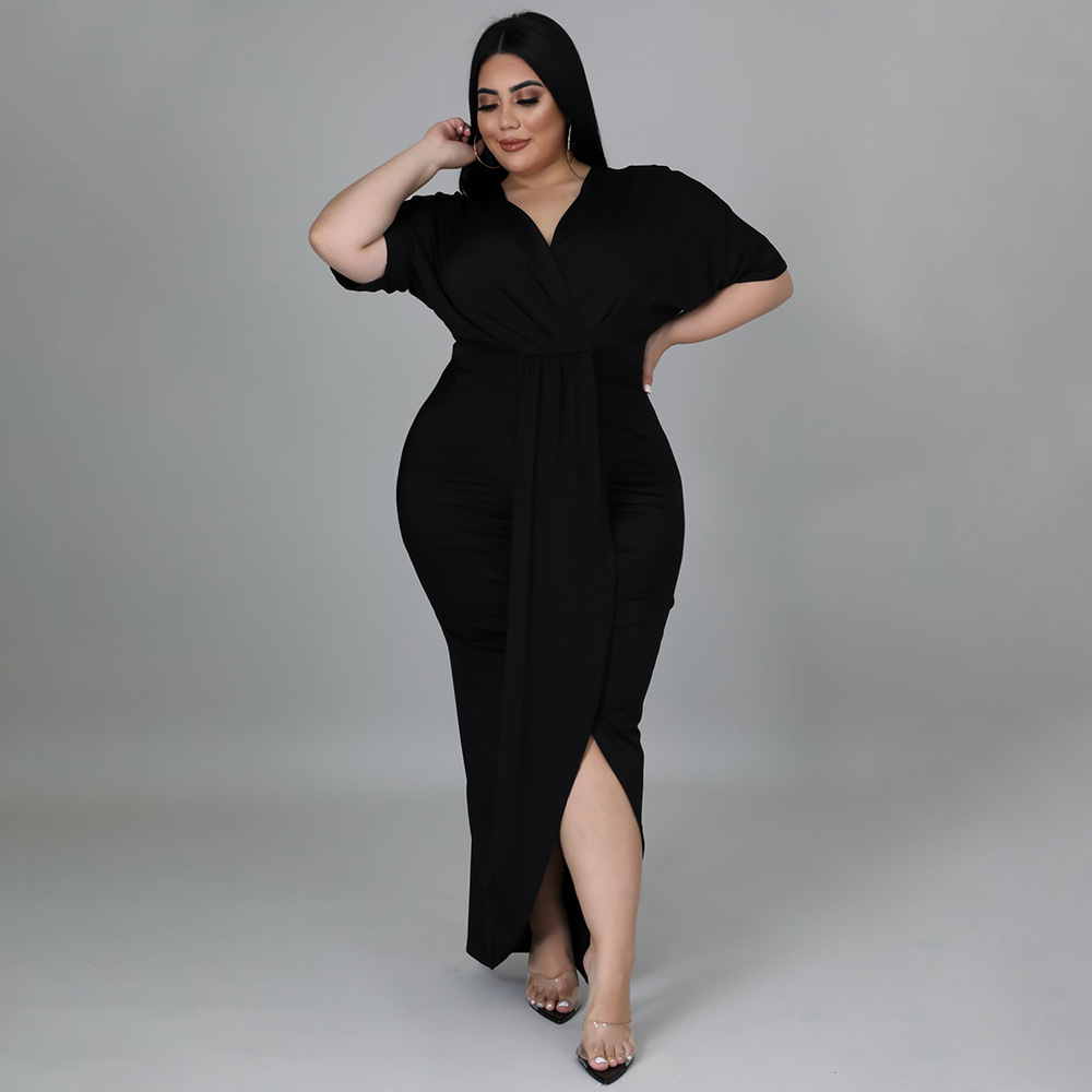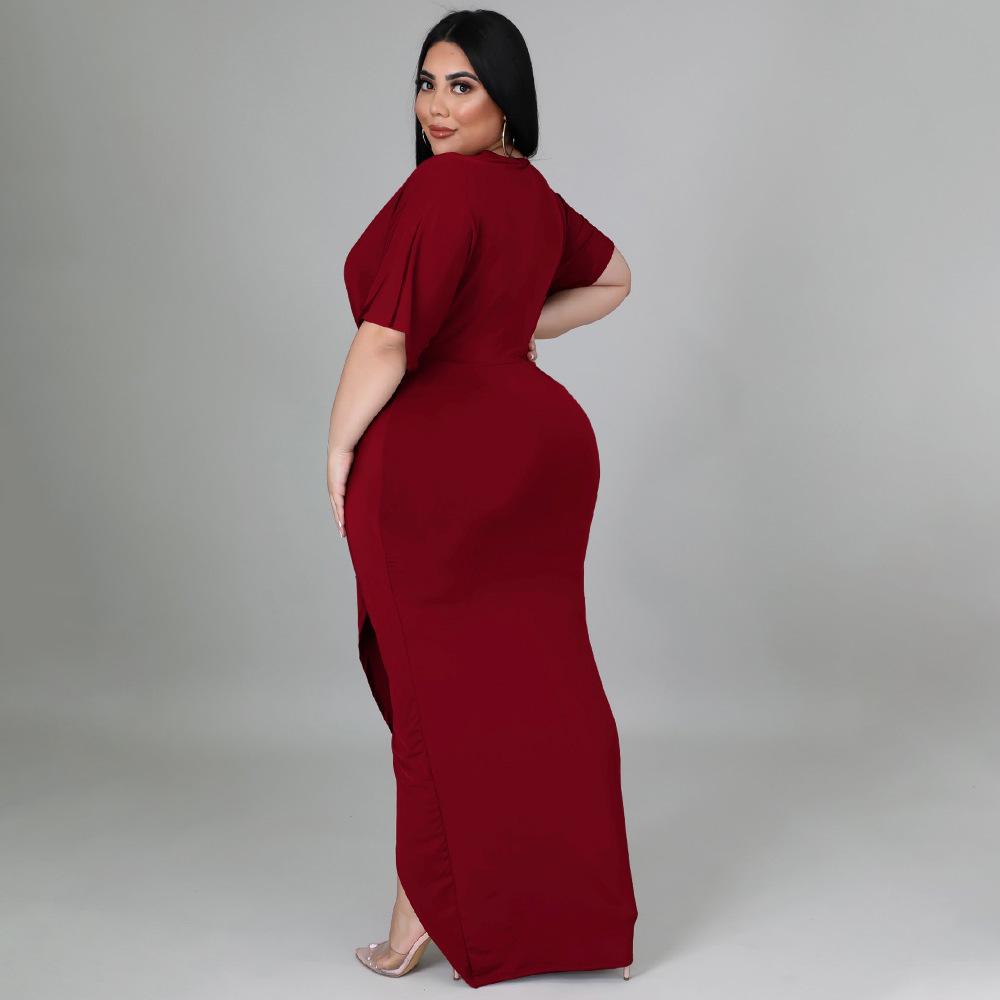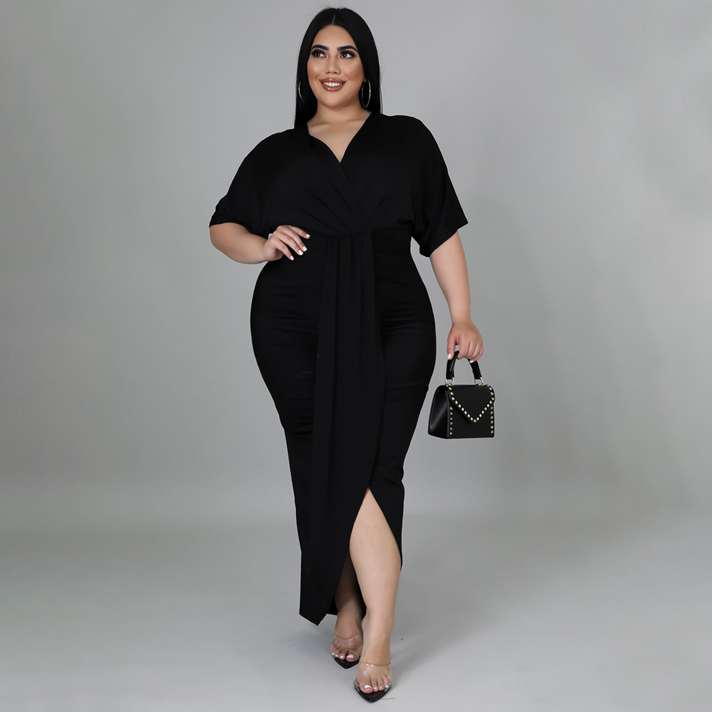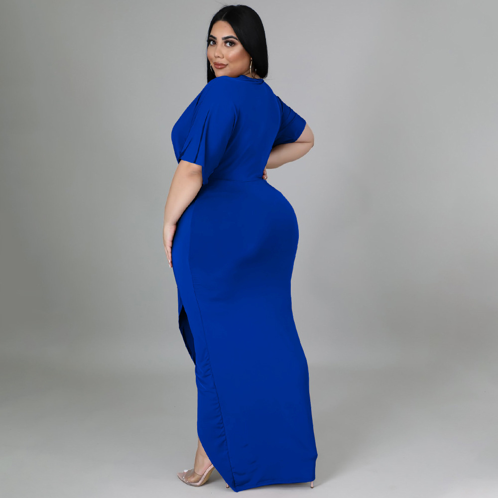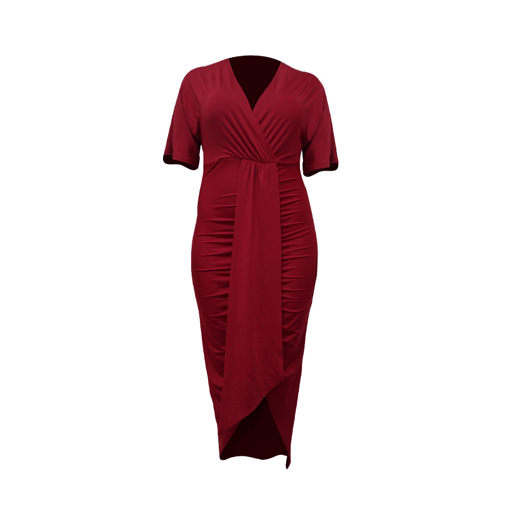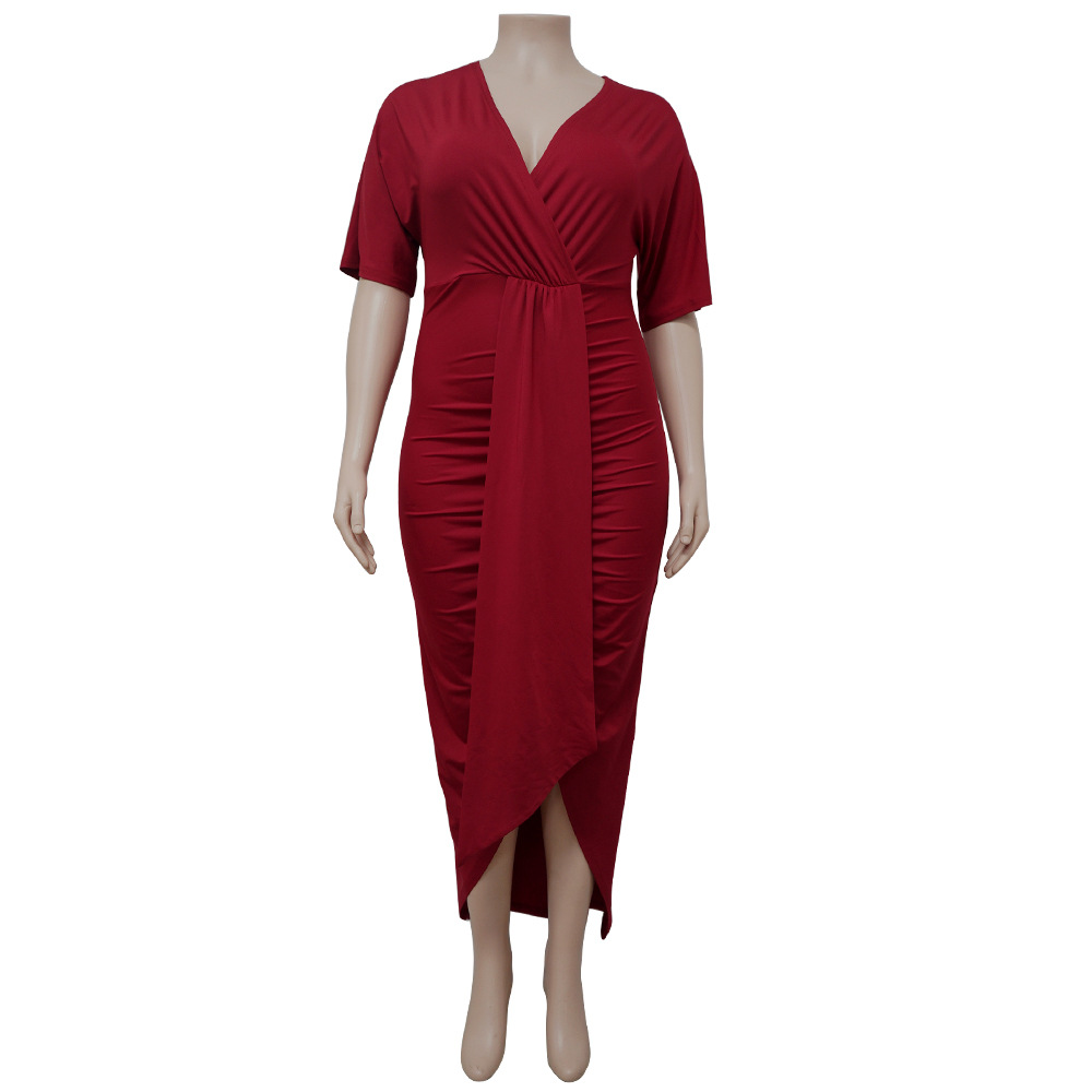 Women's Fashion Plus-Size Irregular Long-Sleeve V-Neck Dress