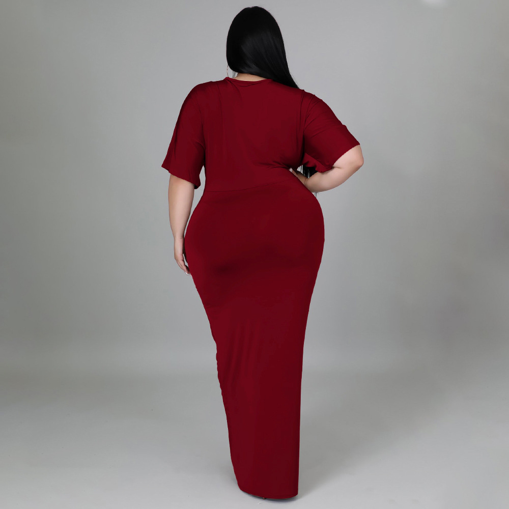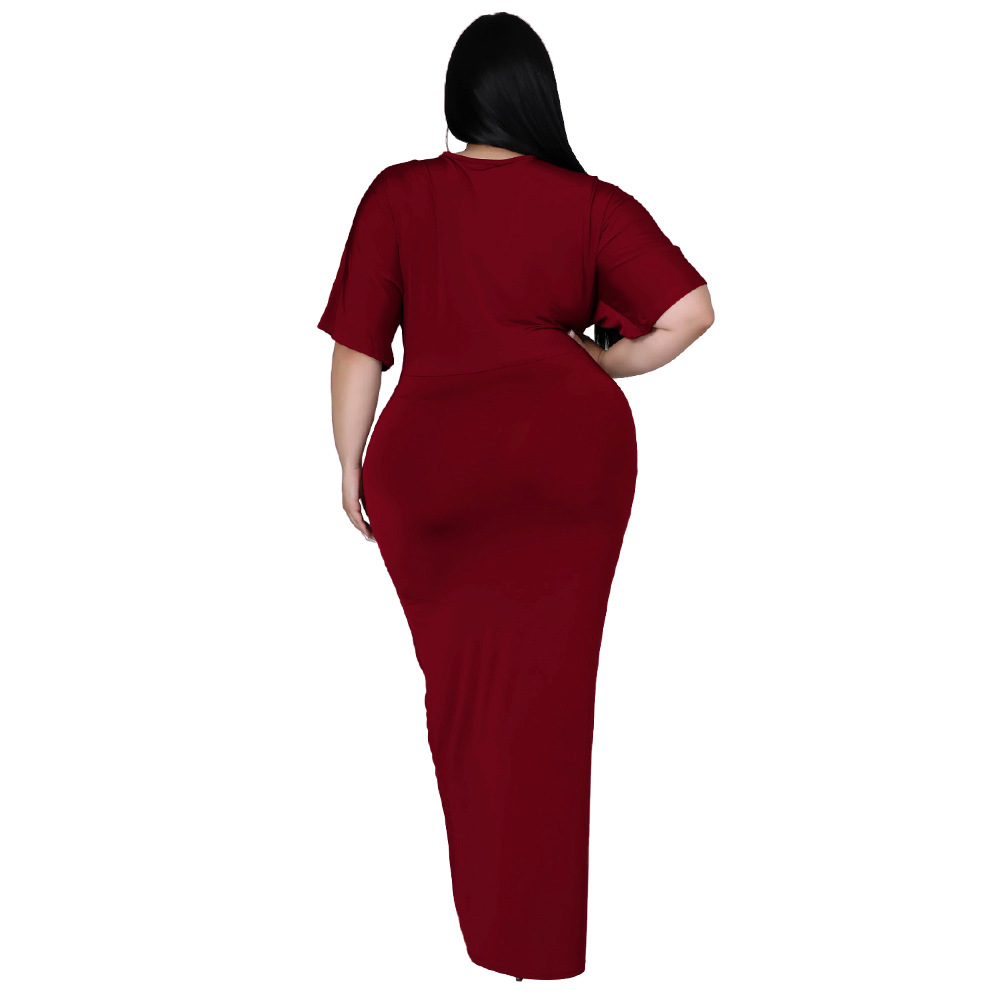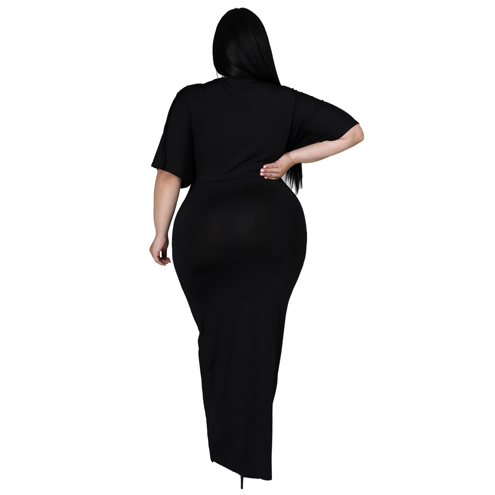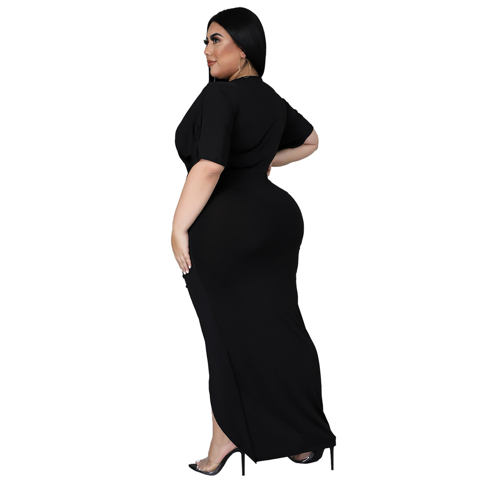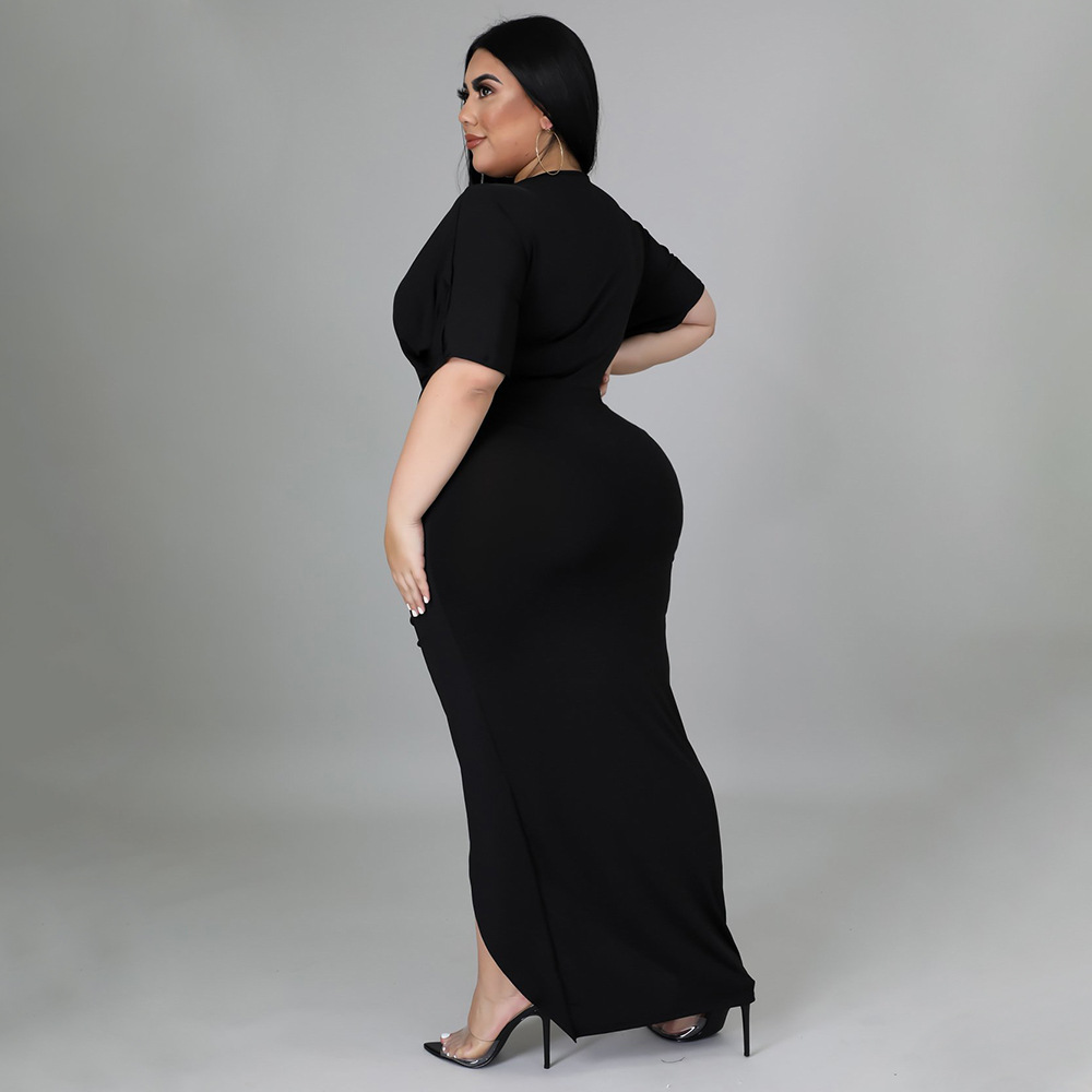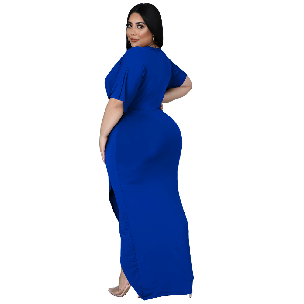 Women's Fashion Plus-Size Irregular Long-Sleeve V-Neck Dress