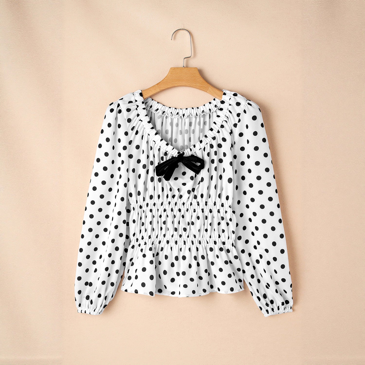 Women's Loose Bundle Casual Square Collar Polka Dot Long Sleeve Shirt