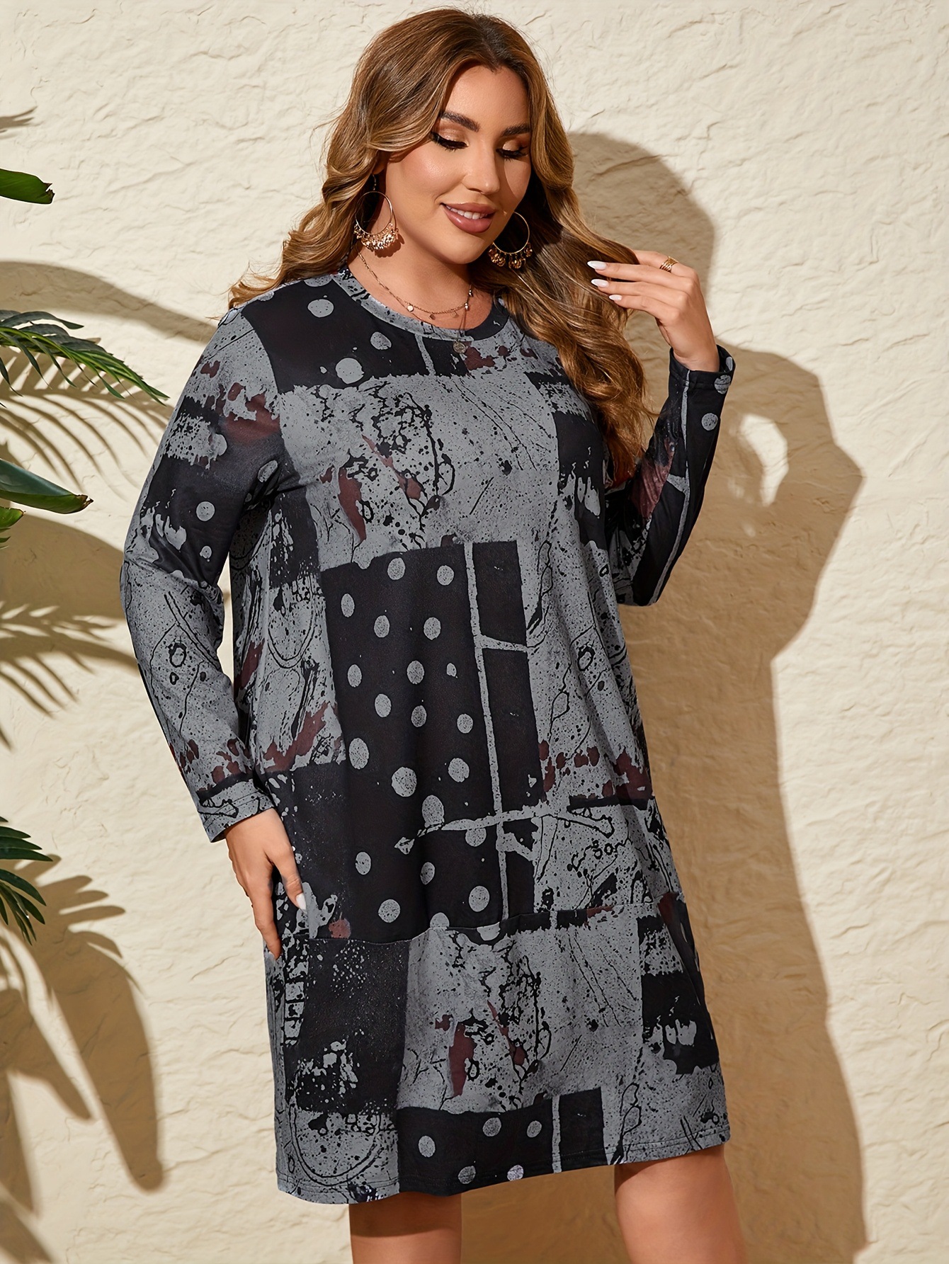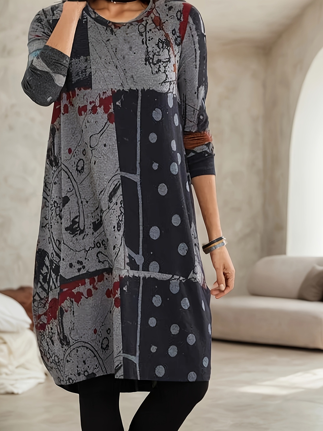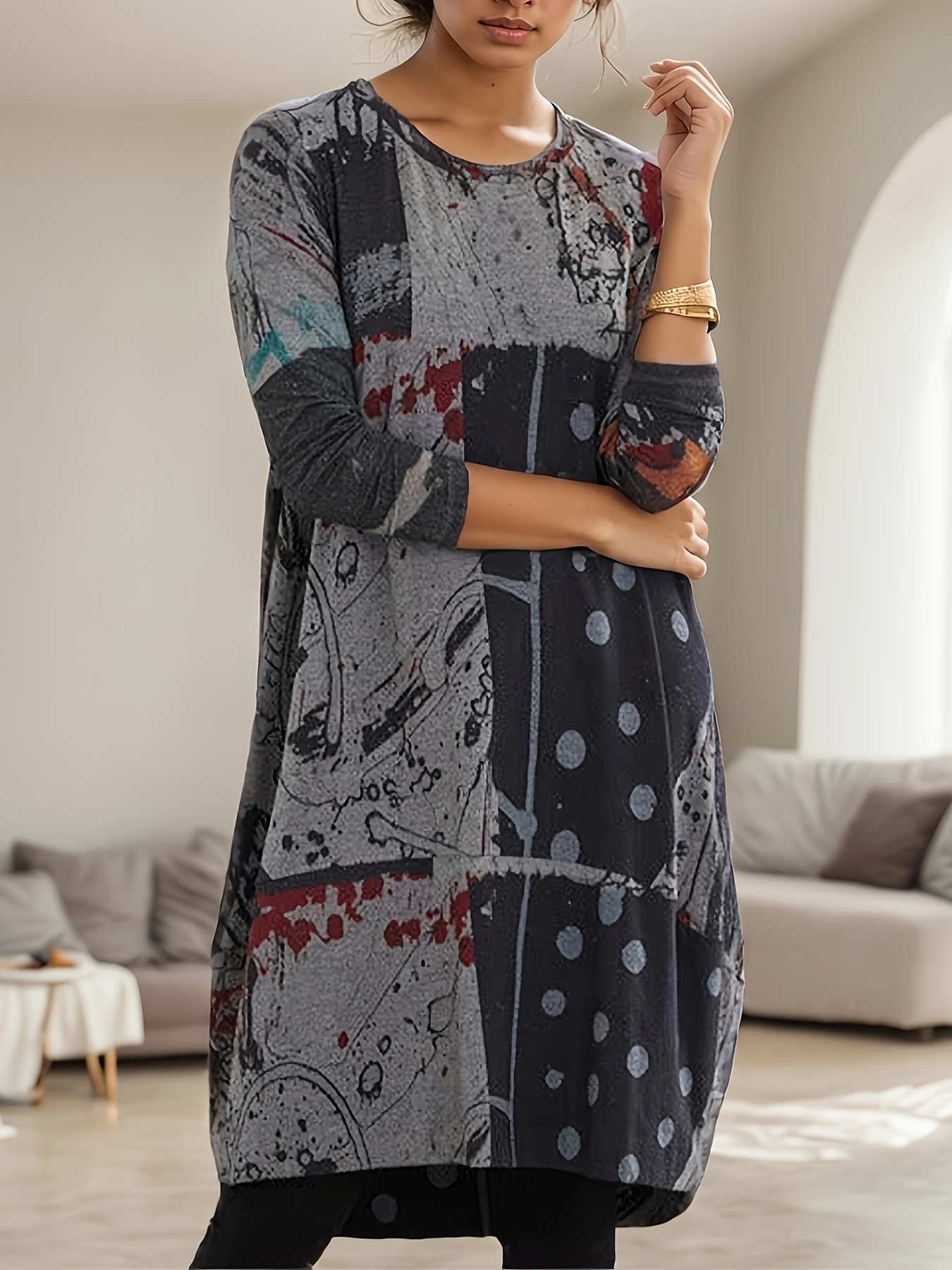 Women's Plus Size Abstract Printing Vintage Dress