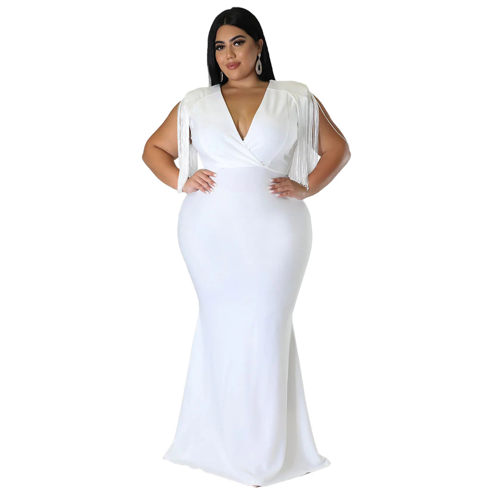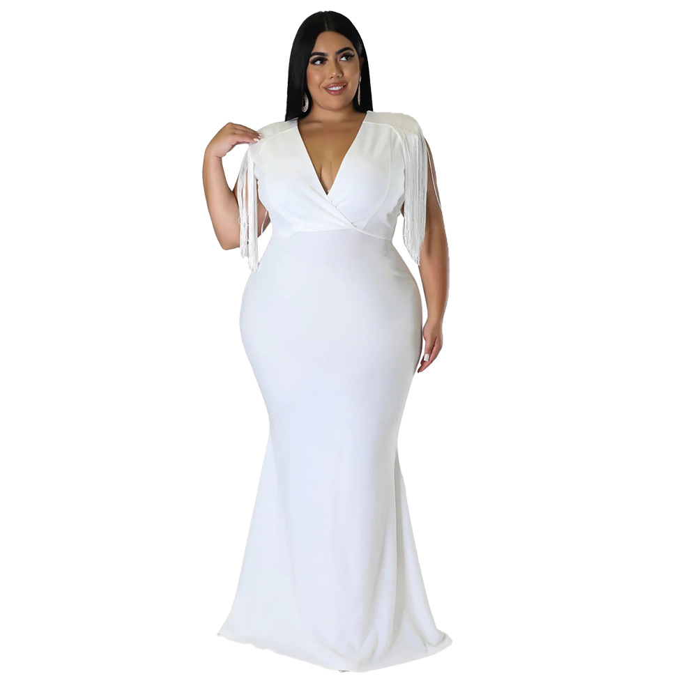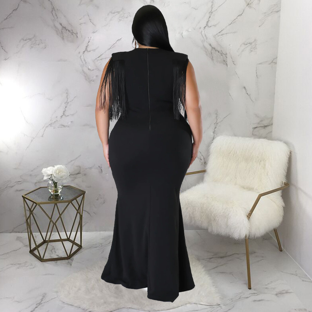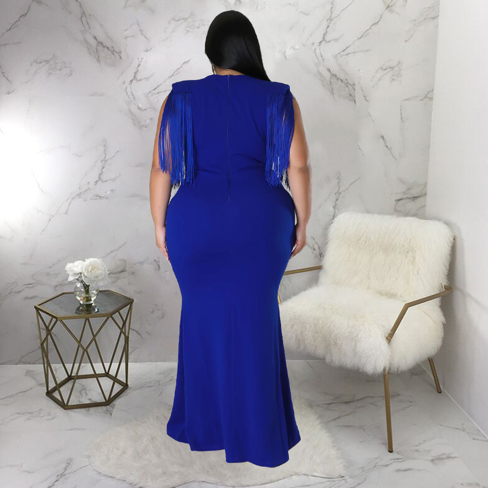 Women's Plus-Size Tassel V-Neck Long-Sleeve Slim-Fit Dress