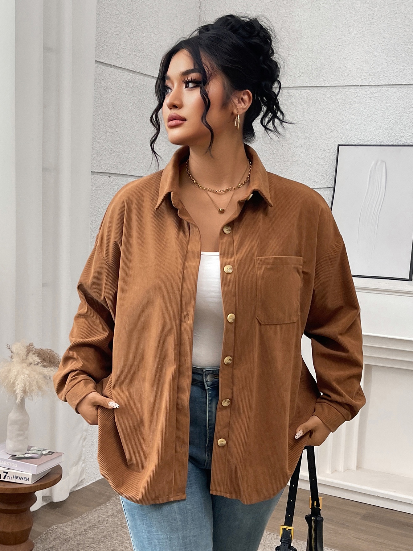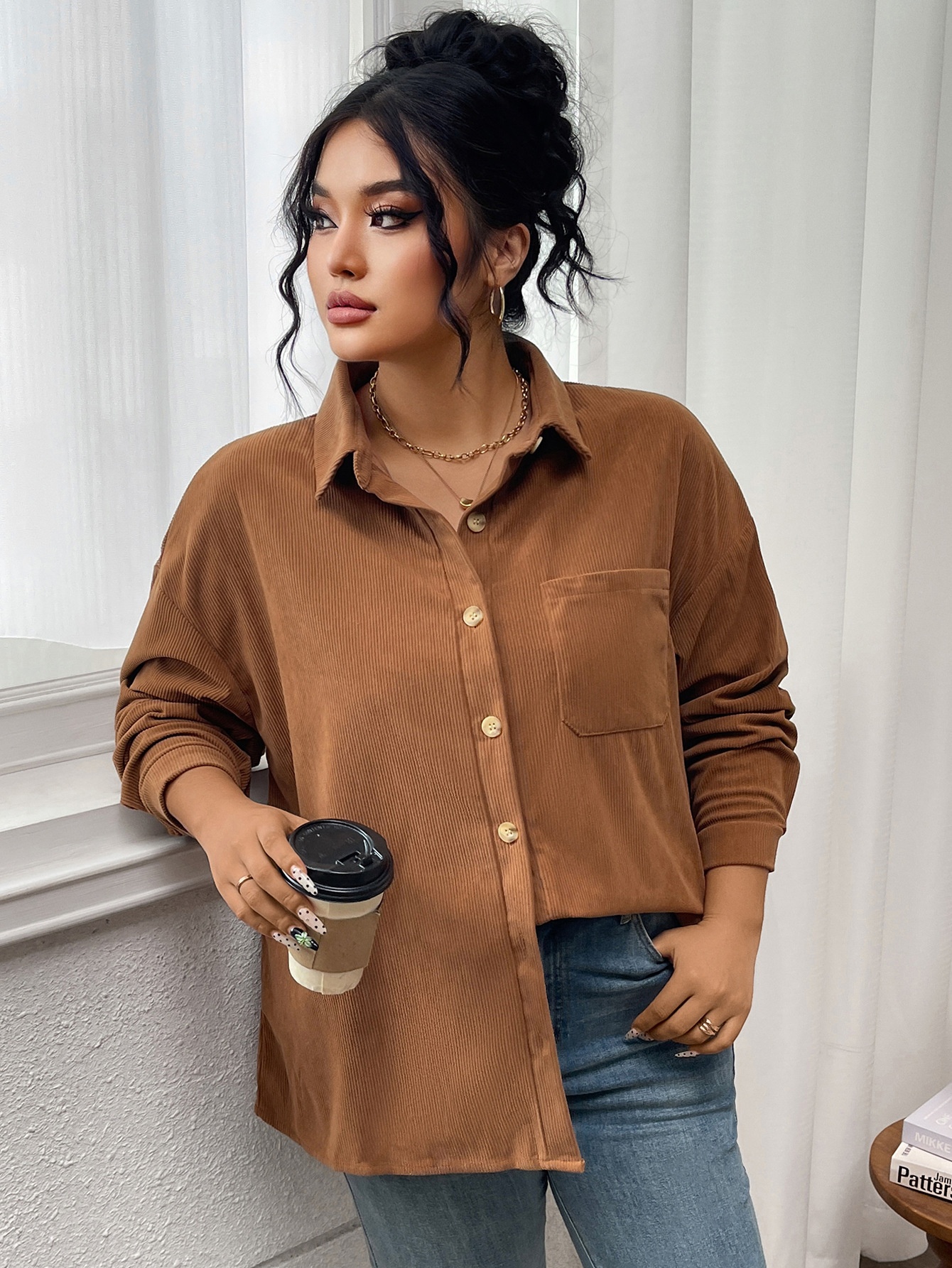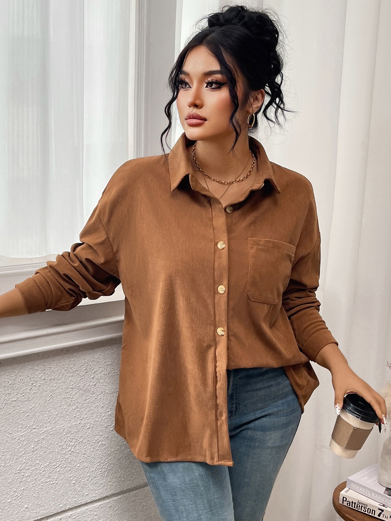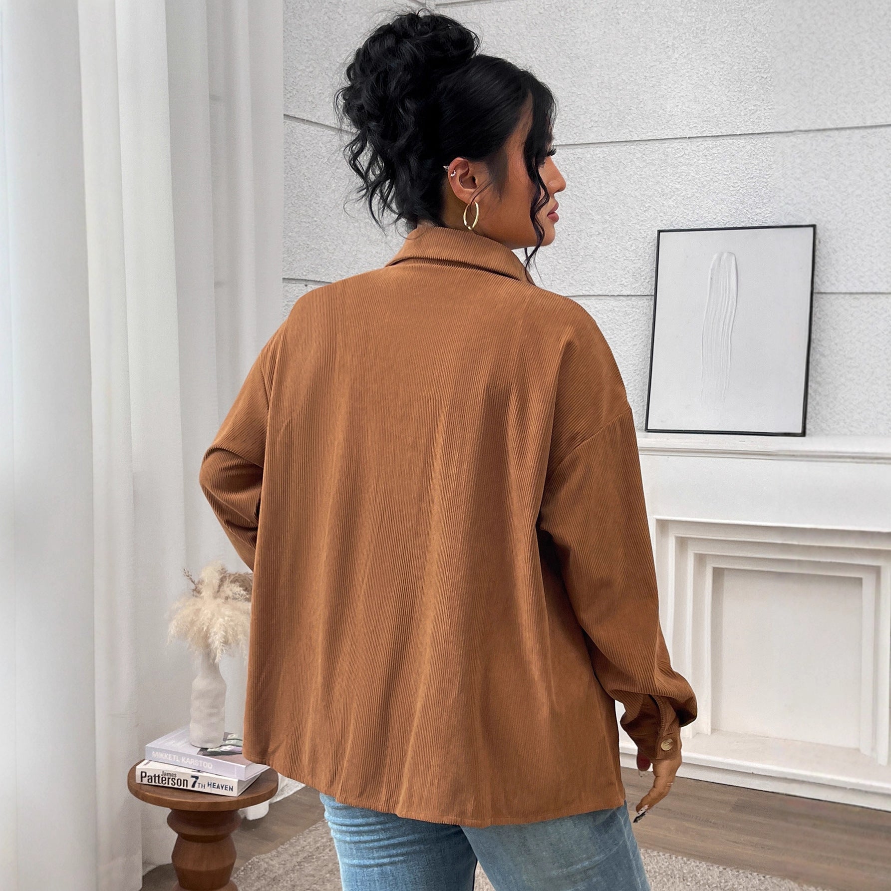 Women's Shirt Solid Color Lapel Corduroy Casual