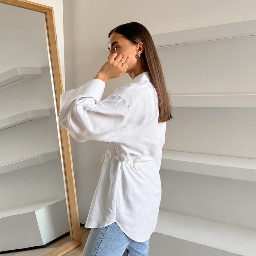 Women's Simple White Cotton And Linen Loose Lapels Shirt