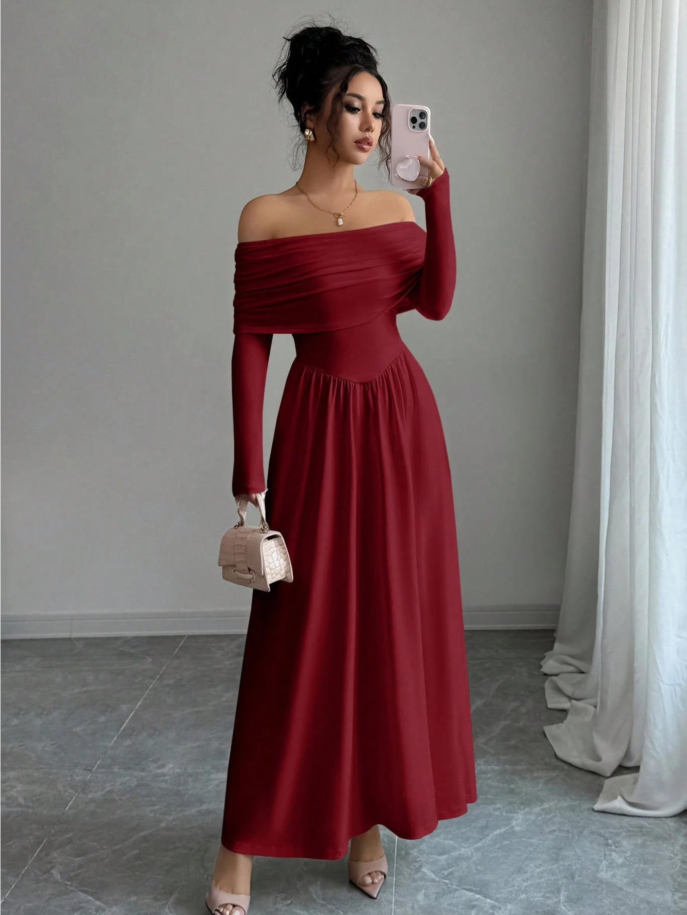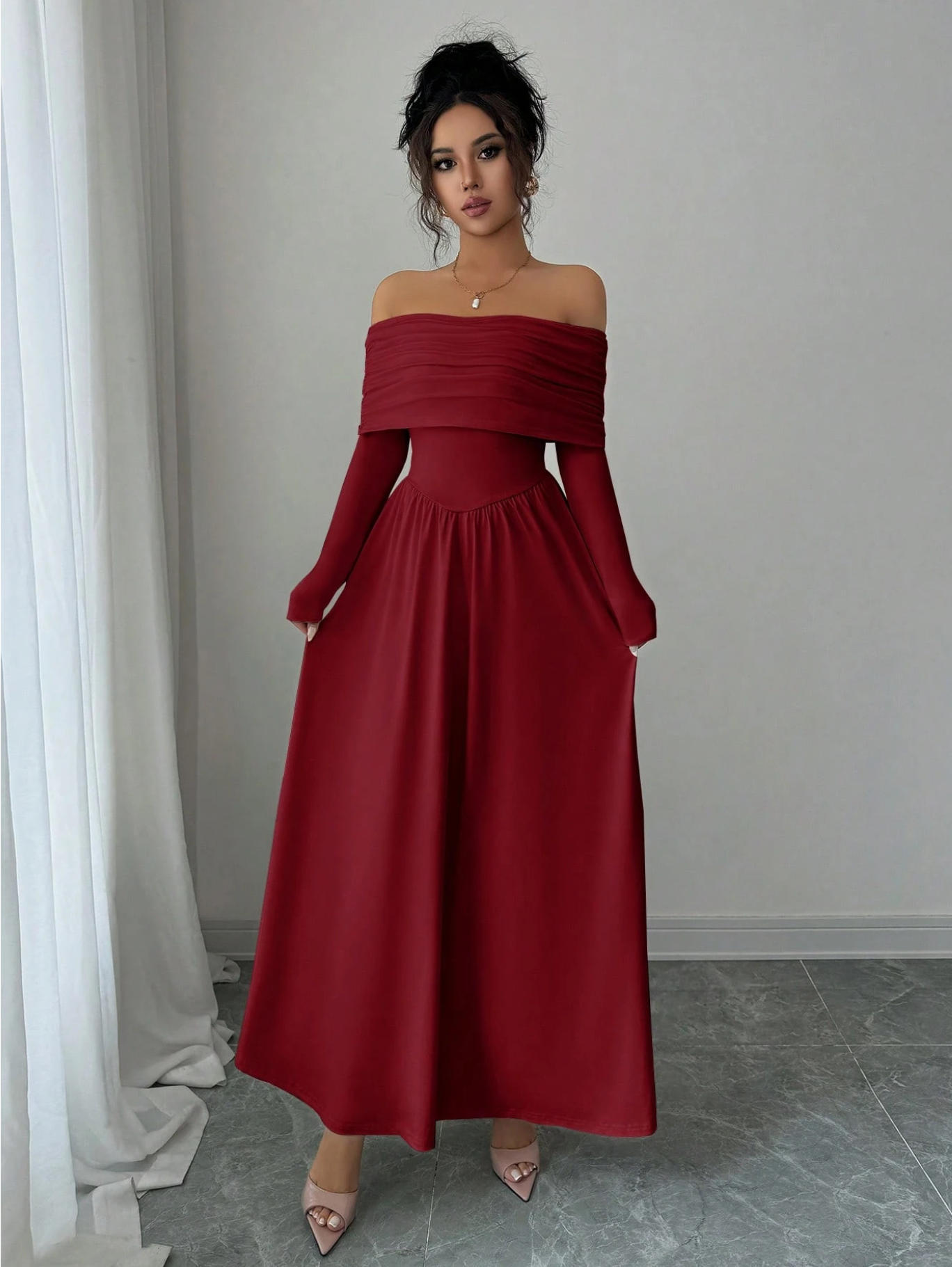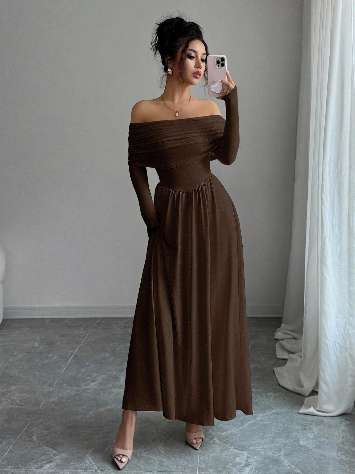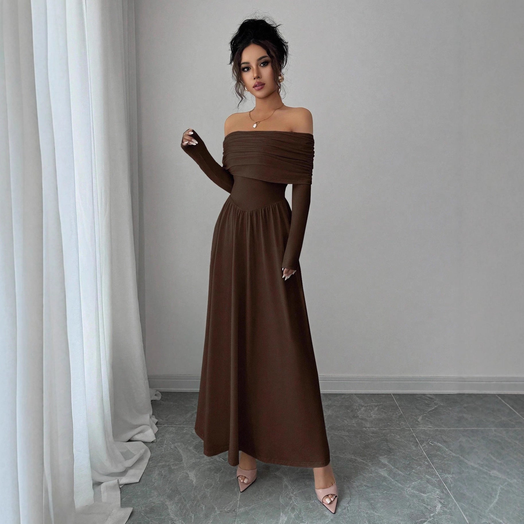 Women's Solid-Color French-Style Off-the-Shoulder Knitted Dress