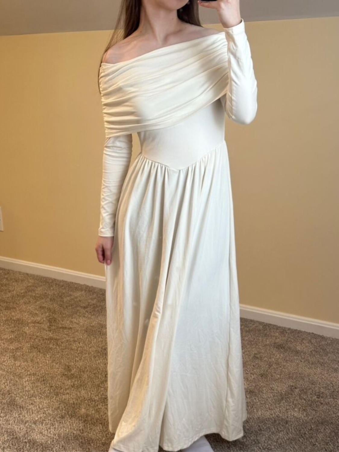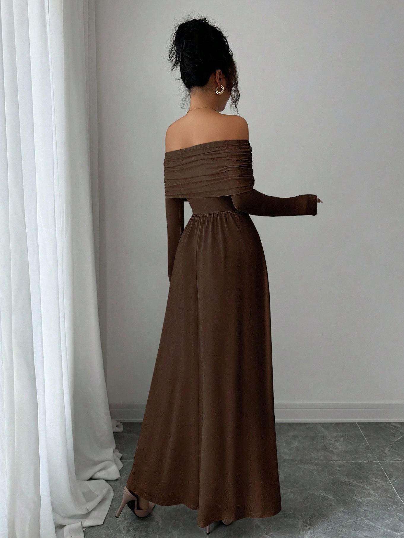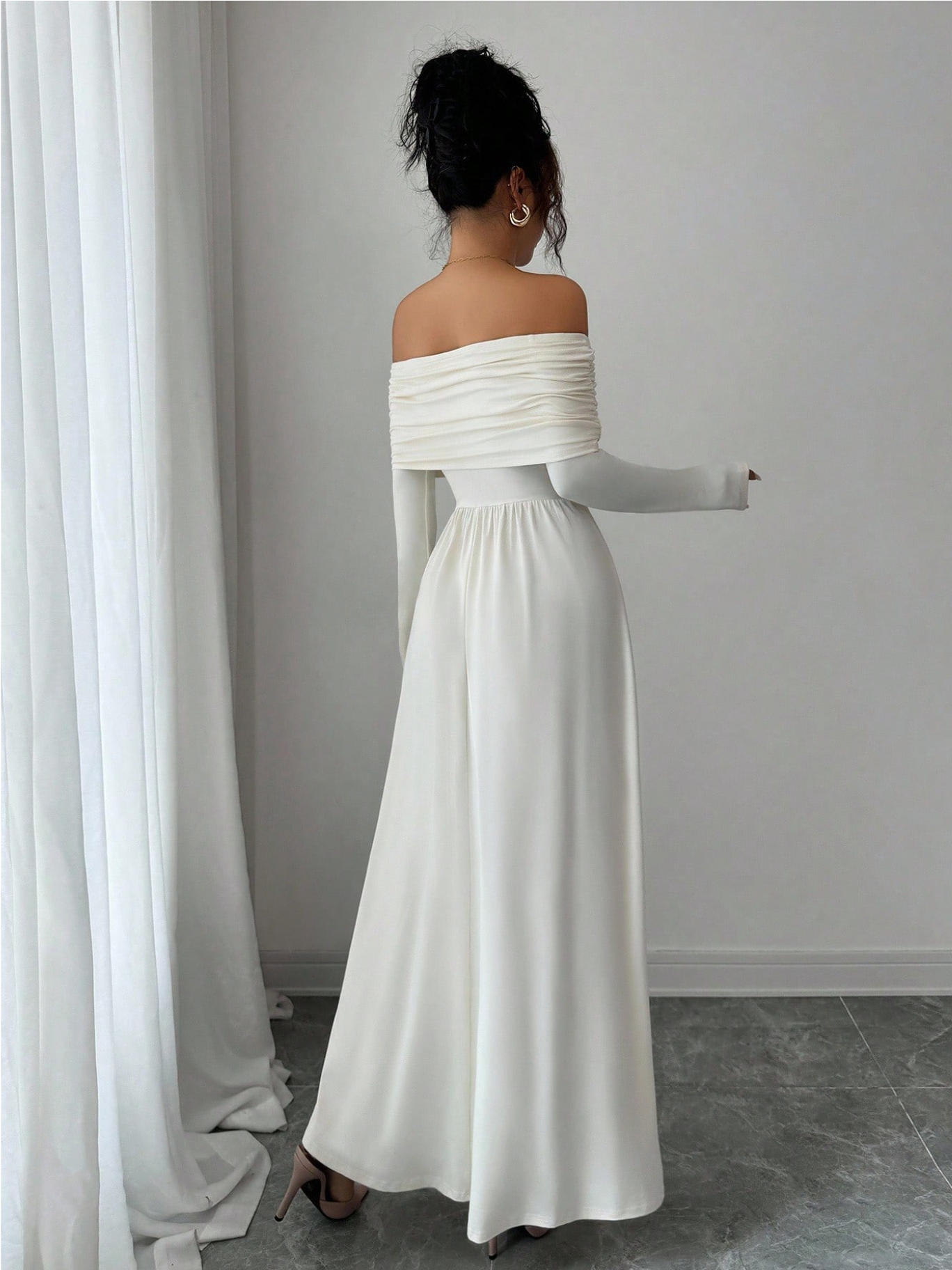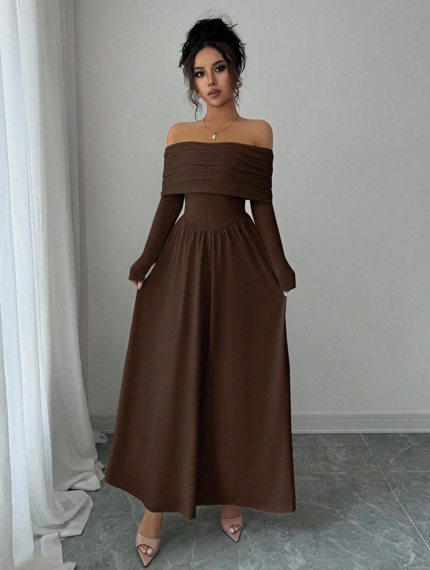 Women's Solid-Color French-Style Off-the-Shoulder Knitted Dress