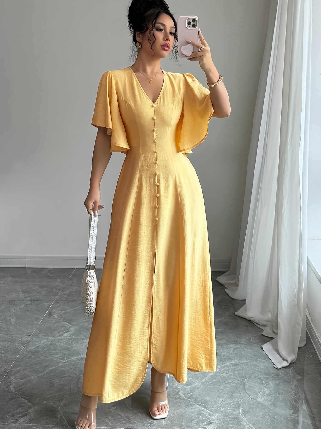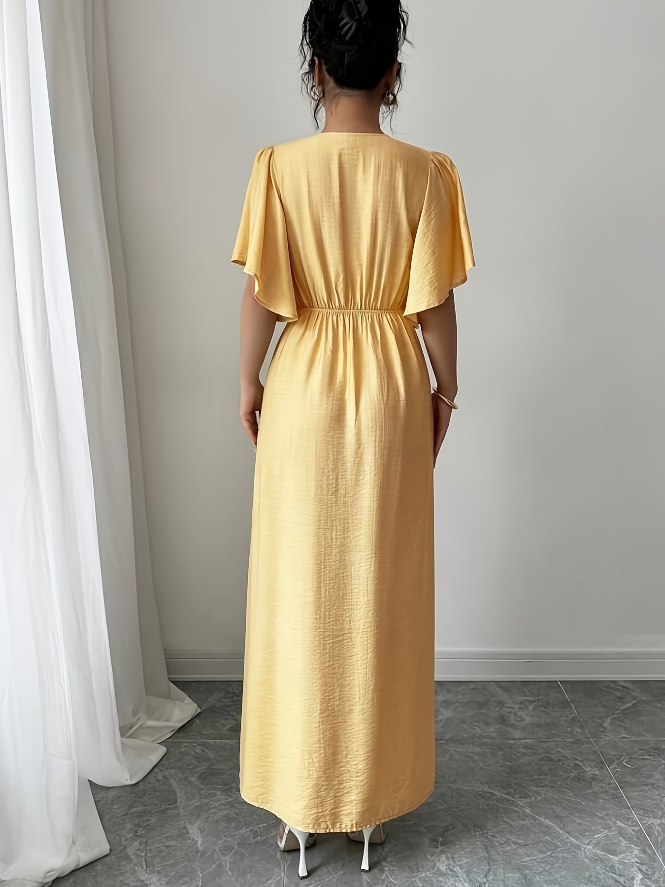 Women's Solid-Colored Split Simple Dress With Petal Sleeves